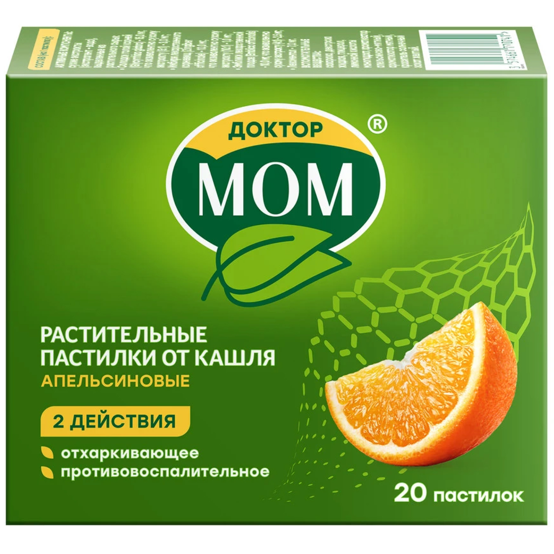 Доктор Мом® Пастилки от кашля №20 (апельсин) - это комбинированный препарат растительного происхождения, который помогает бороться с сухим кашлем, а также оказывает противовоспалительное и отхаркивающее действие (1). Средство удобно носить с собой и использовать в любом месте.