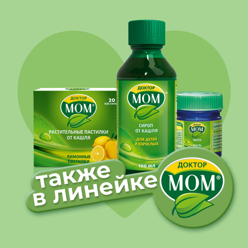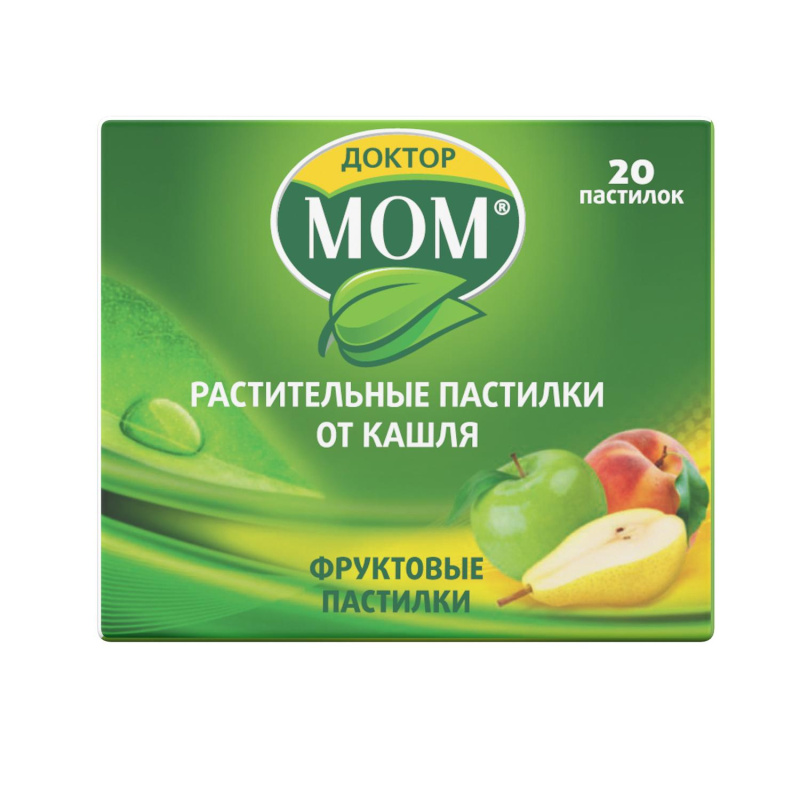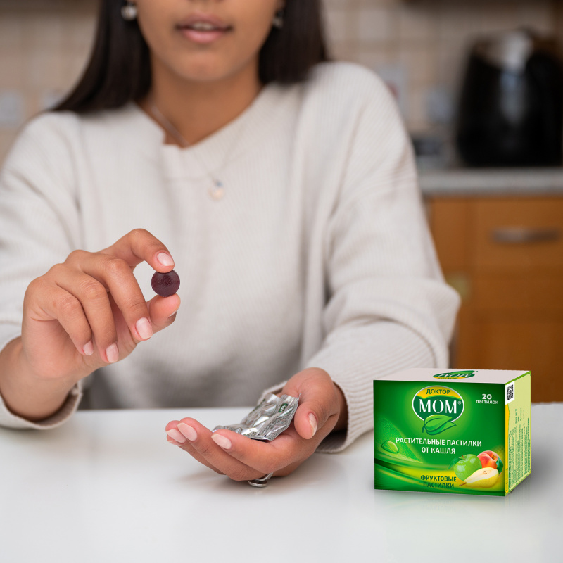Доктор Мом® Пастилки от кашля №20 (фруктовые) - это комбинированный препарат растительного происхождения, который помогает бороться с сухим кашлем, а также оказывает противовоспалительное и отхаркивающее действие (1). Средство удобно носить с собой и использовать в любом месте.