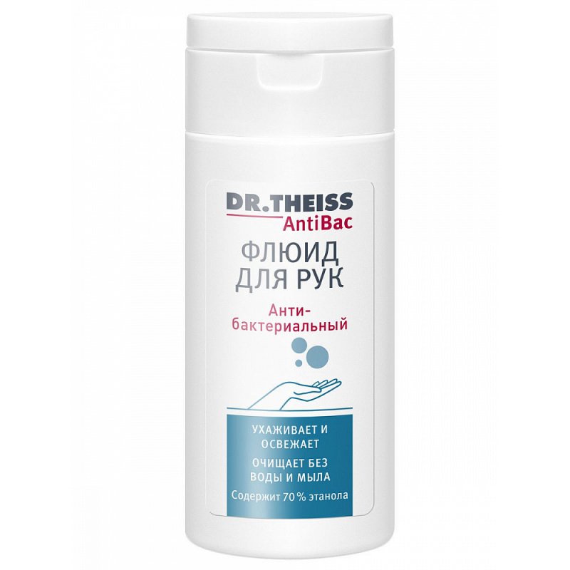 Доктор Тайсс Анти Бак флюид для рук oсвежает и ухаживает за руками. Обладает антибактериальным эффектом и обеспечивает гигиеническую чистоту рук. Удобно взять с собой.