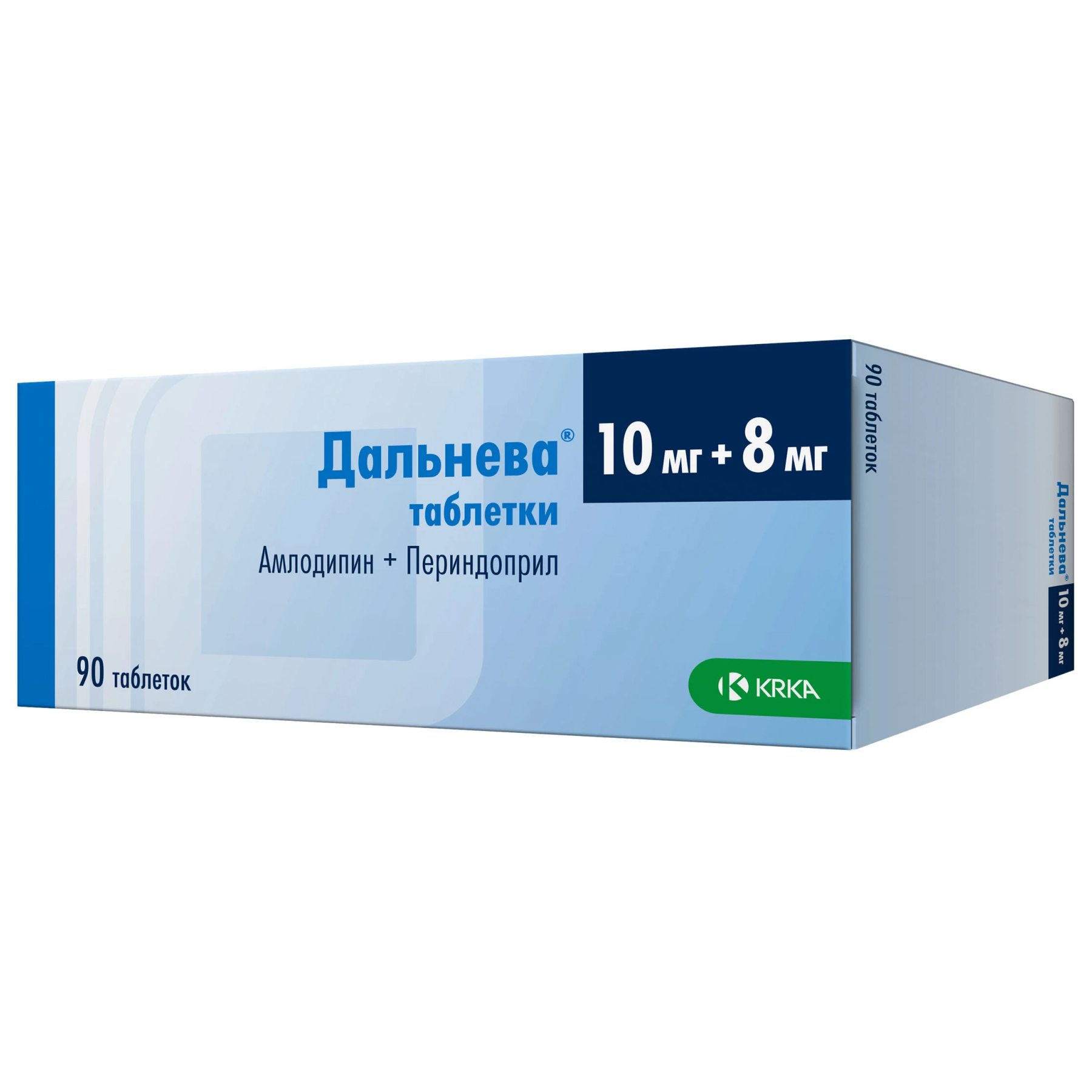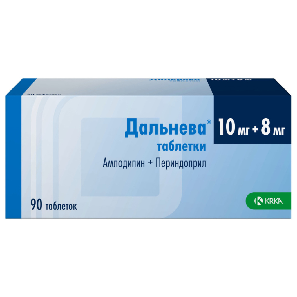 При терапевтической необходимости доза лекарственного препарата Дальнева® может быть изменена на основании индивидуального подбора доз отдельных компонентов: амлодипин 5 мг + периндоприл 4 мг или амлодипин 10 мг + периндоприл 4 мг, или амлодипин 5 мг + периндоприл 8 мг, или амлодипин 10 мг + периндоприл 8 мг. Максимальная суточная доза: амлодипин 10 мг + периндоприл 8 мг.