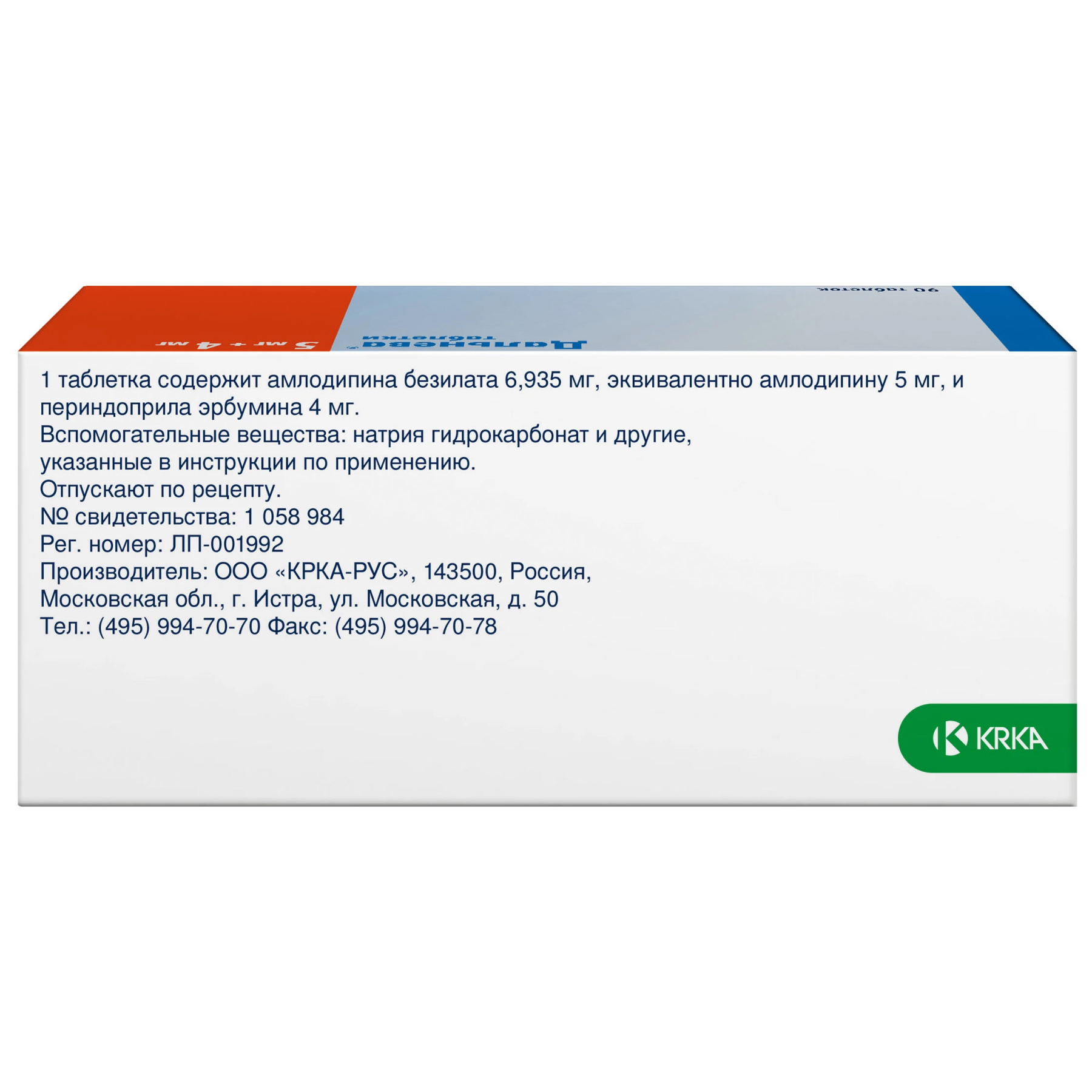 Активные вещества: амлодипин 5 мг, периндоприл 4 мг.