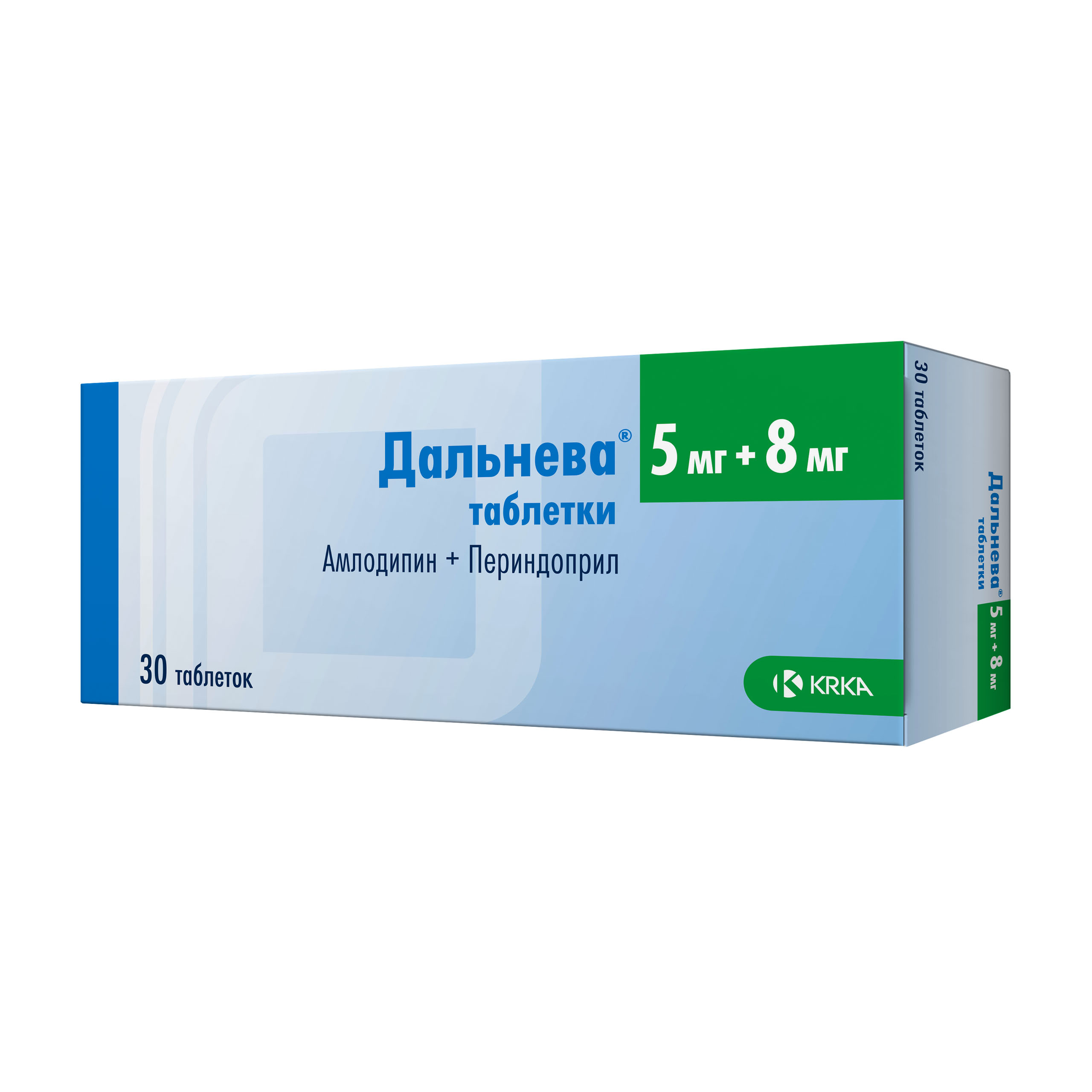 При терапевтической необходимости доза лекарственного препарата Дальнева® может быть изменена на основании индивидуального подбора доз отдельных компонентов: амлодипин 5 мг + периндоприл 4 мг или амлодипин 10 мг + периндоприл 4 мг, или амлодипин 5 мг + периндоприл 8 мг, или амлодипин 10 мг + периндоприл 8 мг. Максимальная суточная доза: амлодипин 10 мг + периндоприл 8 мг.