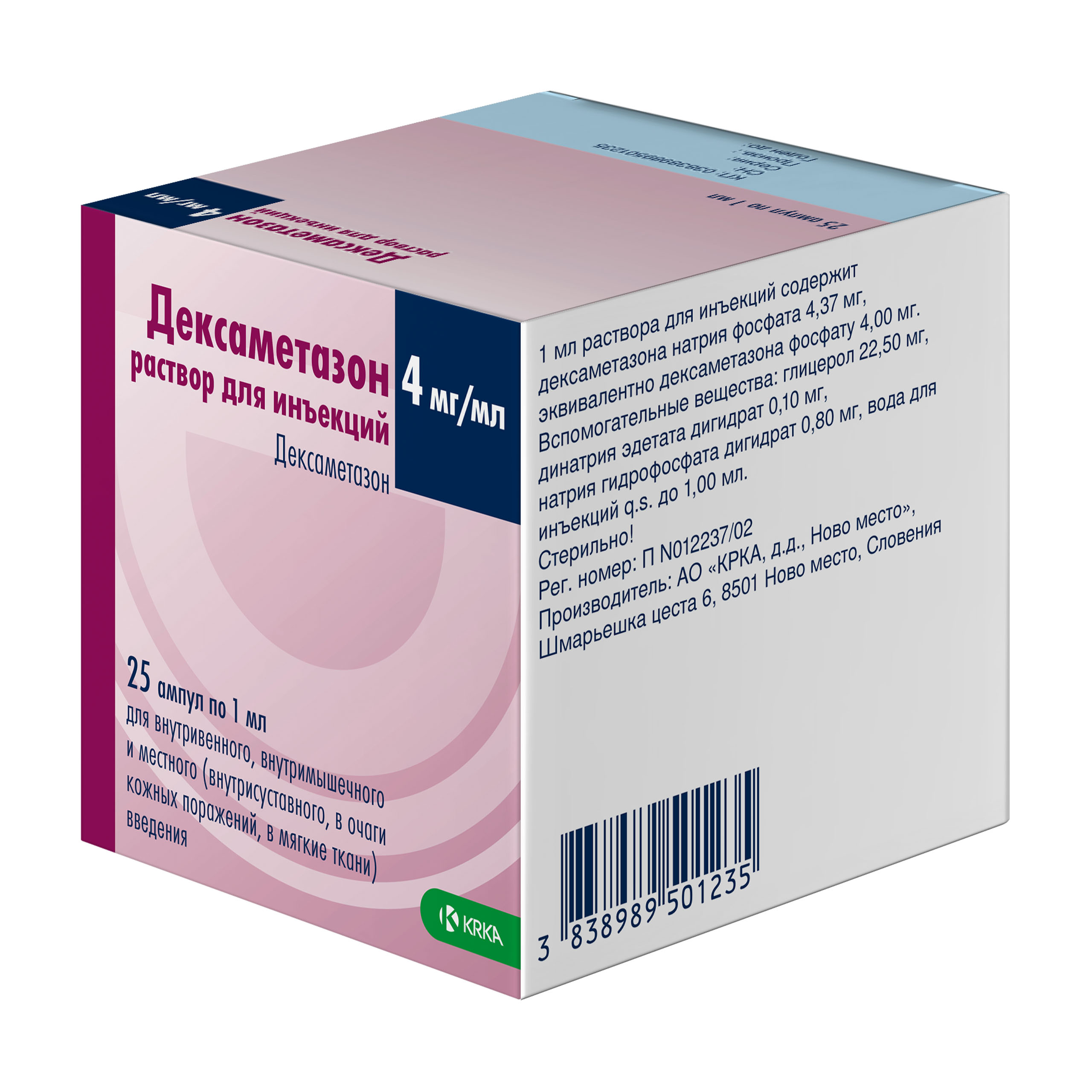 Активное вещество: дексаметазона натрия фосфат (в пересчете на дексаметазона фосфат) - 4 мг;