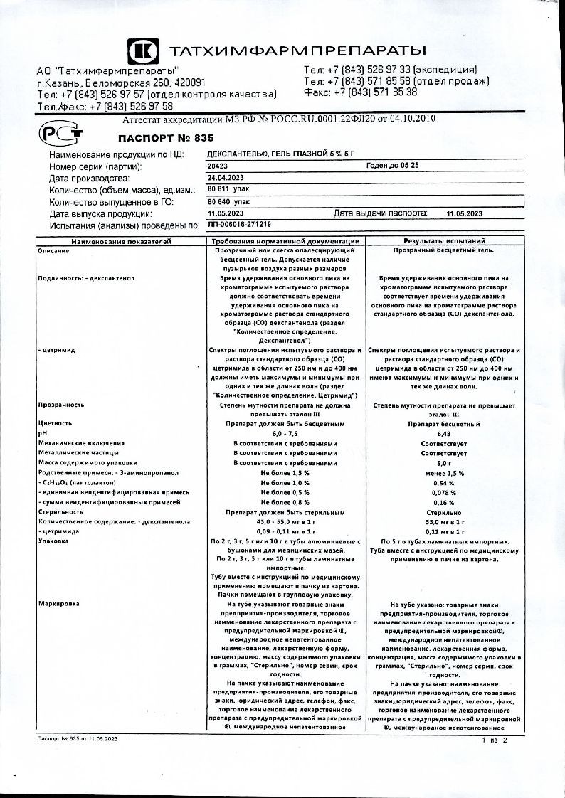Действующее вещество: декспантенол (в пересчете на 100 % вещество) - 50,00 мг.