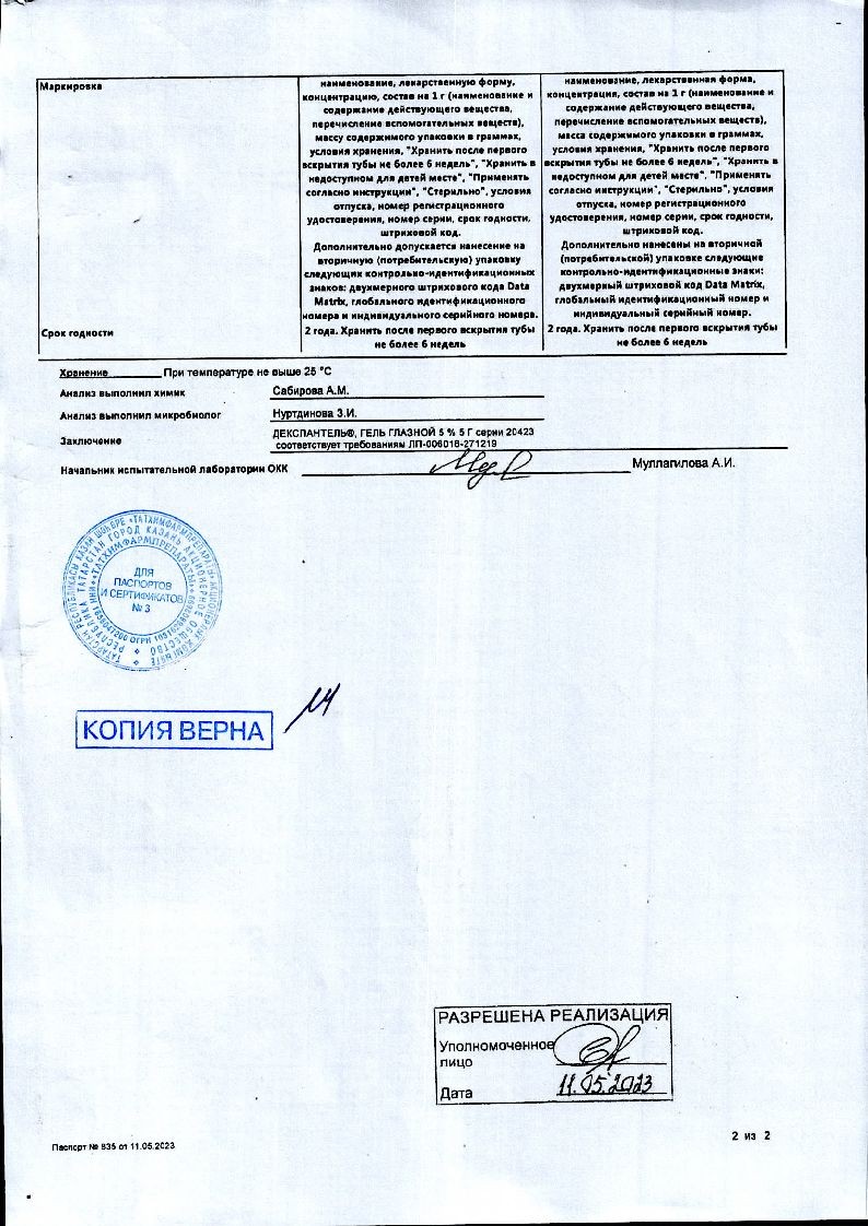 Поскольку данные о концентрации декспантенола (пантотеновой кислоты) в плазме крови после местного применения в виде глазного геля отсутствуют, применение препарата Декспантель® во время беременности и/или грудного вскармливания возможно только после консультации с врачом, когда ожидаемая польза для матери превышает потенциальный риск для плода и/или ребенка.