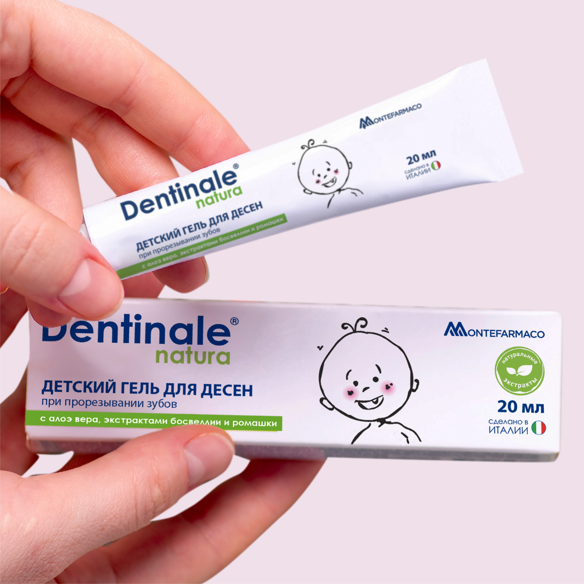 Прорезывание зубов - этап развития ребенка, сопровождаемый множеством неприятных симптомов. При выборе средств, способствующих ослаблению болезненных признаков прорезывания, важно помнить об их безопасности, чтобы еще больше не навредить малышу. Легче перенести этот период без использования синтетических анестетиков и анальгетиков поможет гель для десен при прорезывании зубов Dentinale natura. Dentinale natura - спокойствие и здоровый сон при прорезывании зубов. Он не содержит сахара, парабенов и лидокаина, имеет приятный вкус. Основу геля составляют сок алоэ вера, экстракты босвиллии и ромашки, которые обладают обезболивающим эффектом, способствуют уменьшению чувствительности, раздражения и воспаления десен.