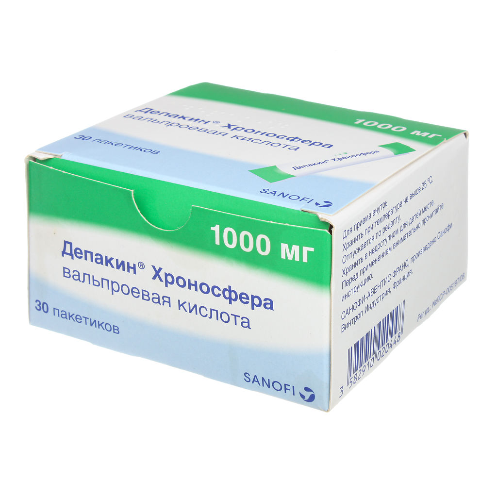 Депакин® Хроносфера представляет собой гранулы с пролонгированным высвобождением, обеспечивающие более равномерные концентрации вальпроевой кислоты в крови и, соответственно, более равномерное в течение суток ее распределение в тканях.