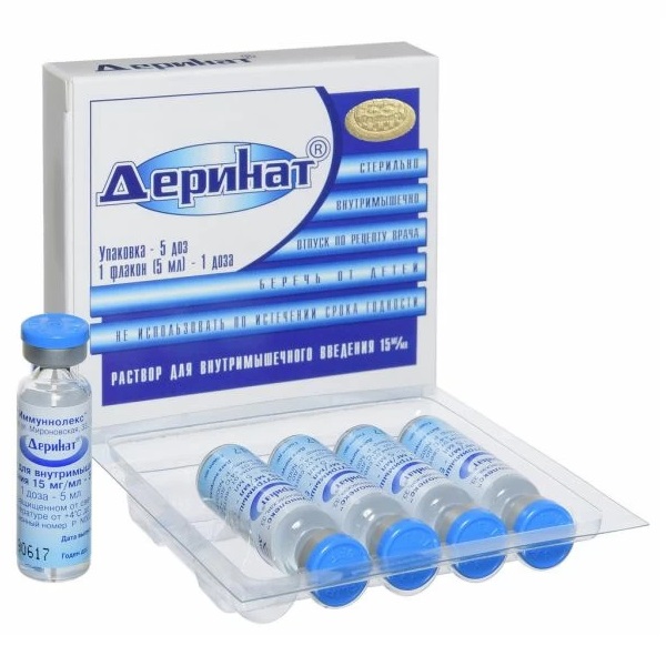 Применение Дерината в комплексной терапии позволяет повысить эффективность и сократить продолжительность терапии, при значительном уменьшении доз антибиотиков и противовирусных средств с увеличением периодов ремиссии.