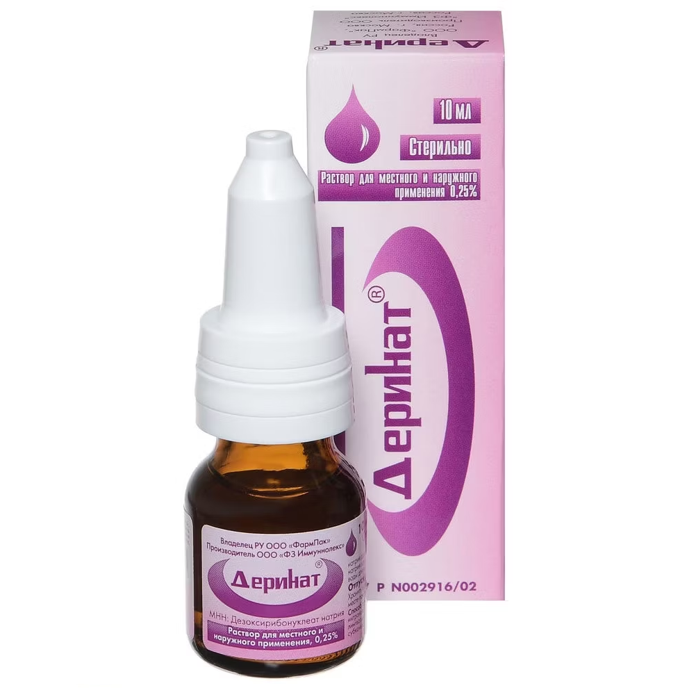 Деринат® в виде раствора для наружного и местного применения назначают в зависимости от локализации патологического процесса.