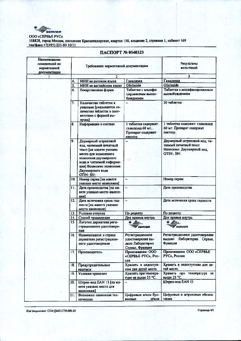 Действующее вещество: гликлазид - 60 мг.