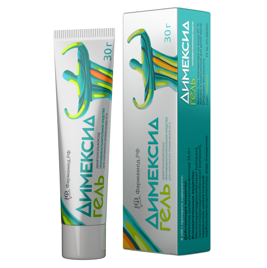 Действующее вещество: диметилсульфоксид 25,0 г.