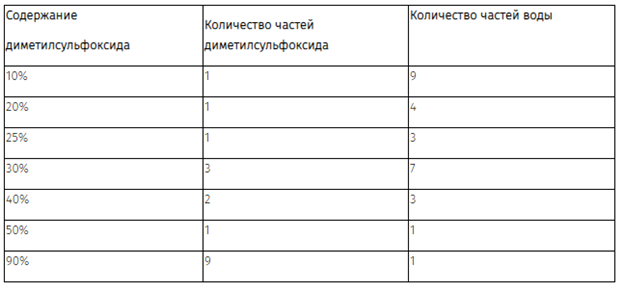 У детей 12-18 лет применяют 20-30 % водные растворы диметилсульфоксида.