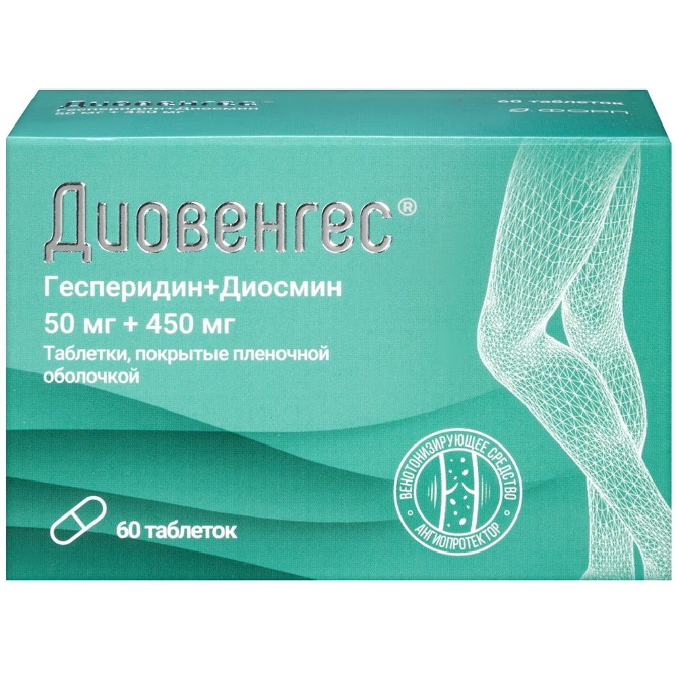 Диовенгес 50 мг + 450 мг 60 шт таблетки покрытые пленочной оболочкой (арт. 10064974) купить по цене 1 265 ₽ в интернет аптеке в Москве и Московской области — Aptstore