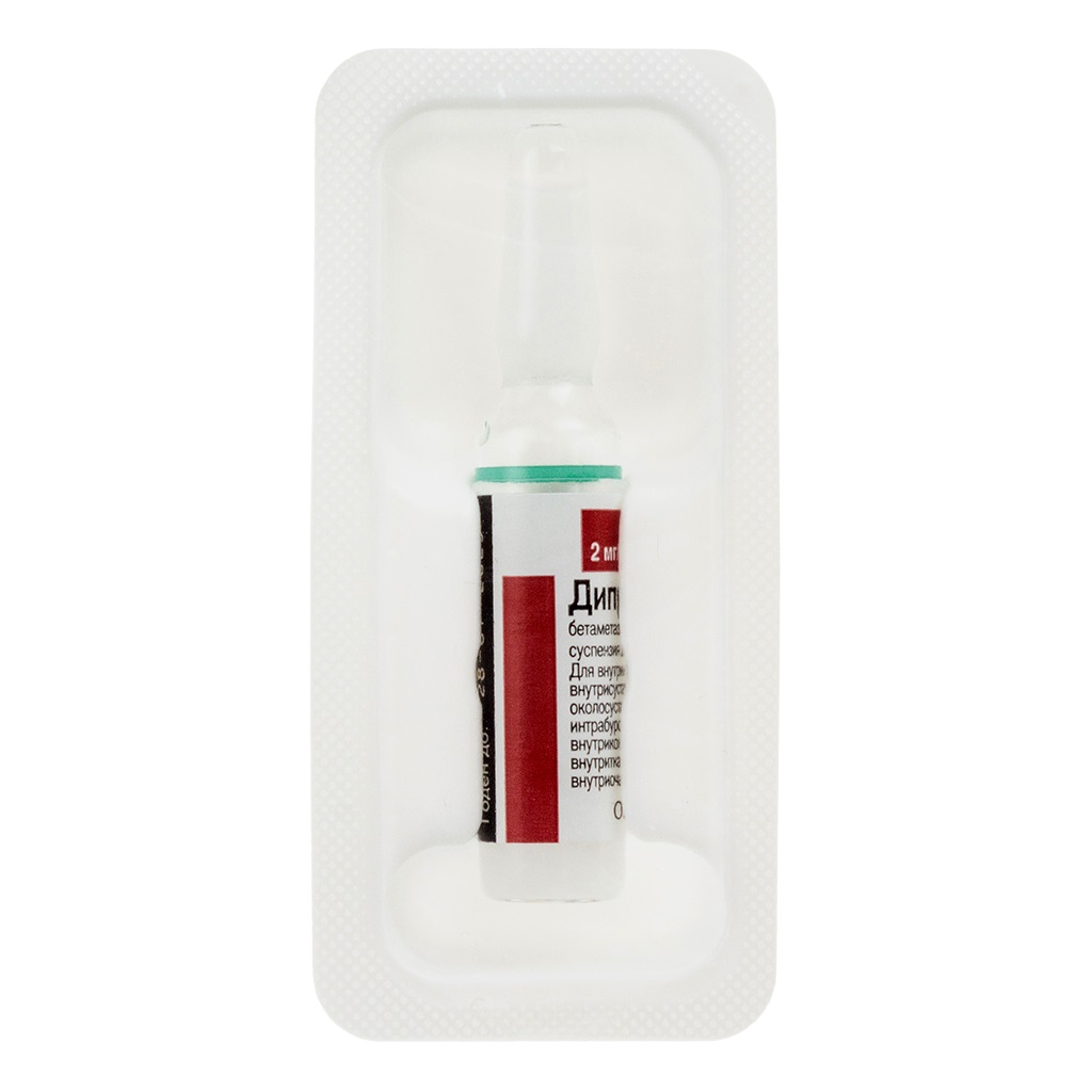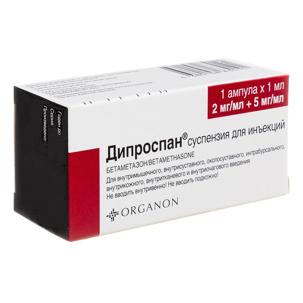 Дипроспан® содержит два активных вещества - соединения бетаметазона, одно из которых, бетаметазона натрия фосфат, является быстрорастворимой фракцией и поэтому быстро проникает в системный кровоток. Следует учитывать возможное системное действие препарата.