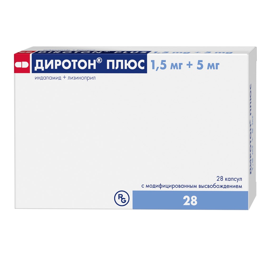 Как правило, комбинированные препараты с фиксированной дозой не следует применять для начальной терапии. Препарат Диротон® Плюс назначается взрослым пациентам, у которых достигнут адекватный контроль артериальной гипертензии на фоне приема лизиноприла и индапамида, которые пациент принимает одновременно в тех же дозах, что и в комбинированном препарате.
