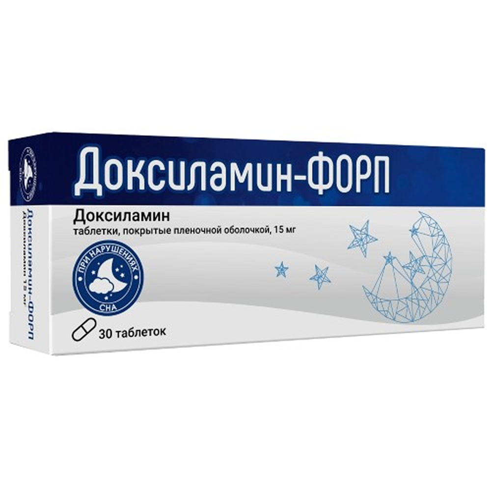 Действующее вещество: Доксиламина сукцинат - 15.0 мг.