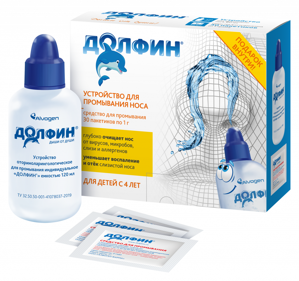 Специальное устройство для промывания «Долфин» оснащено насадкой, которая обеспечивает равномерное и плавное поступление раствора во время процедуры. Насадка компенсирует излишнее давление, и промывающая жидкость поступает в полость носа постепенно. Поэтому сама процедура максимально комфортна.