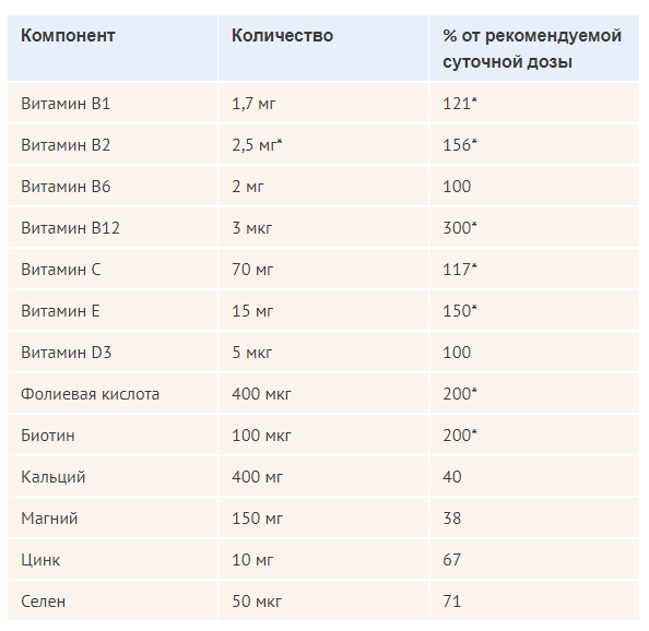 Дополнительный источник селена, цинка, магния, кальция, витаминов В1, В2, В6, В12, Е, С, D3, фолиевой кислоты, биотина.