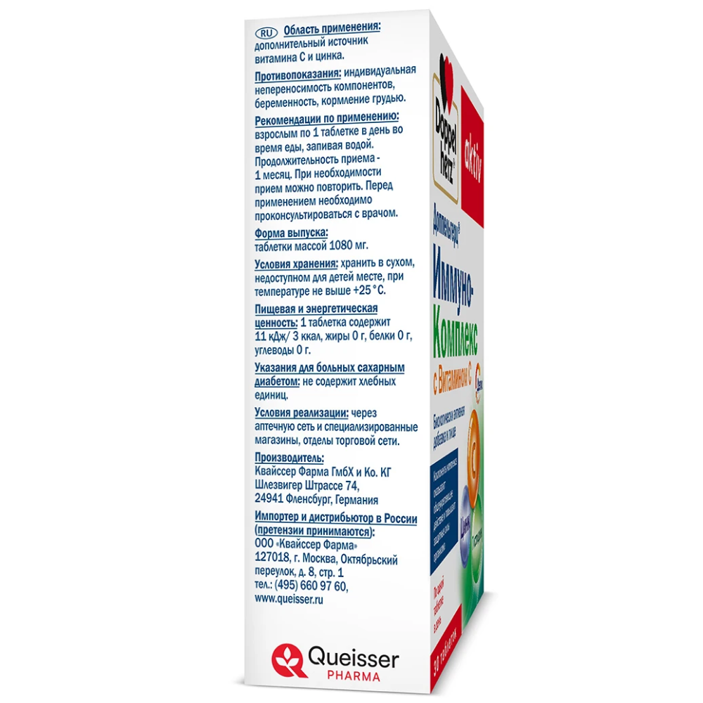 Комплекс содержит в своем составе два биологически активных компонента– витамин С (аскорбиновую кислоту) и цинк– которые способствуют повышению защитных сил организма, поддержке иммунной системы, а также антиоксидантной защите организма. Компоненты комплекса участвуют в регулировании окислительно-восстановительных процессов, углеводного обмена, свертываемости крови.