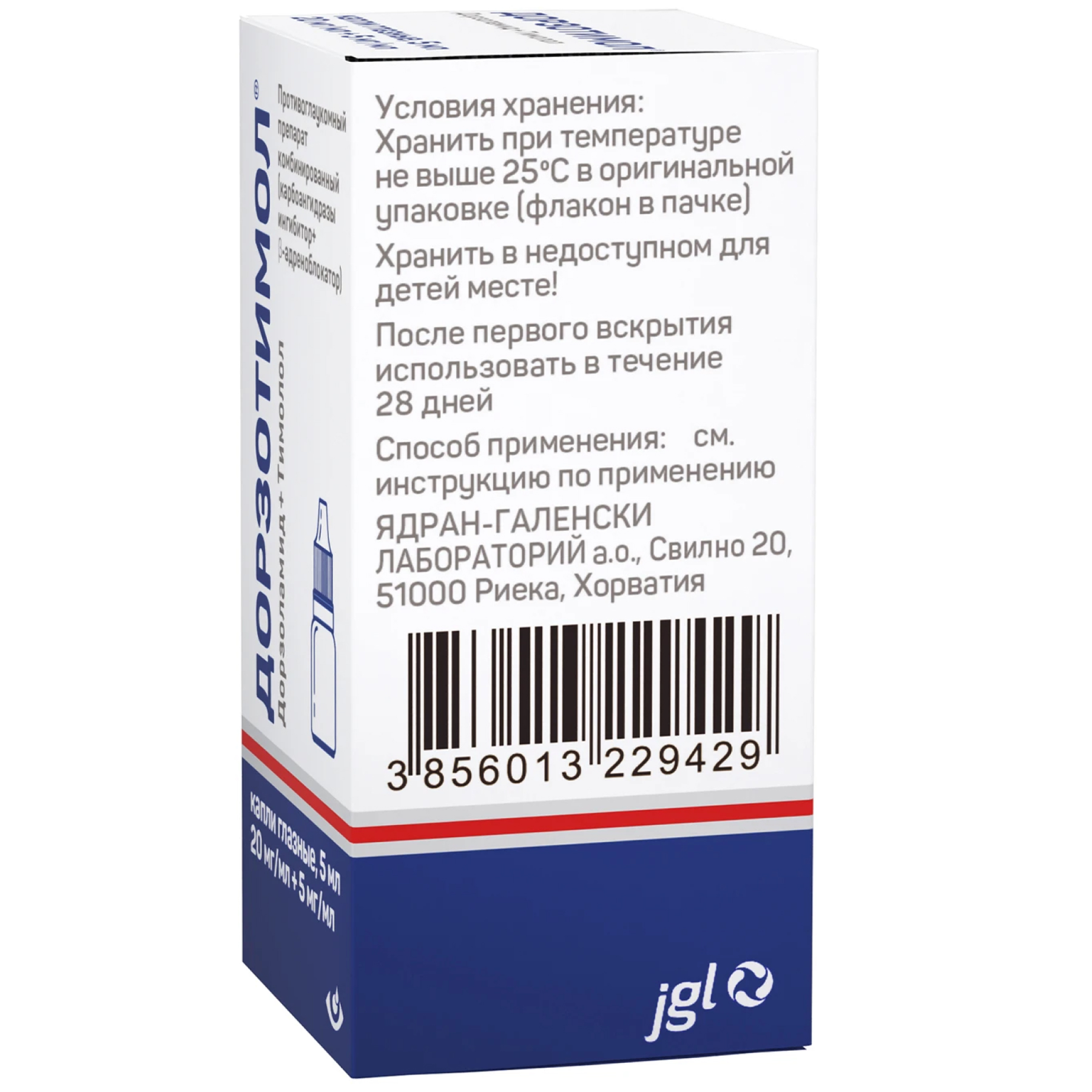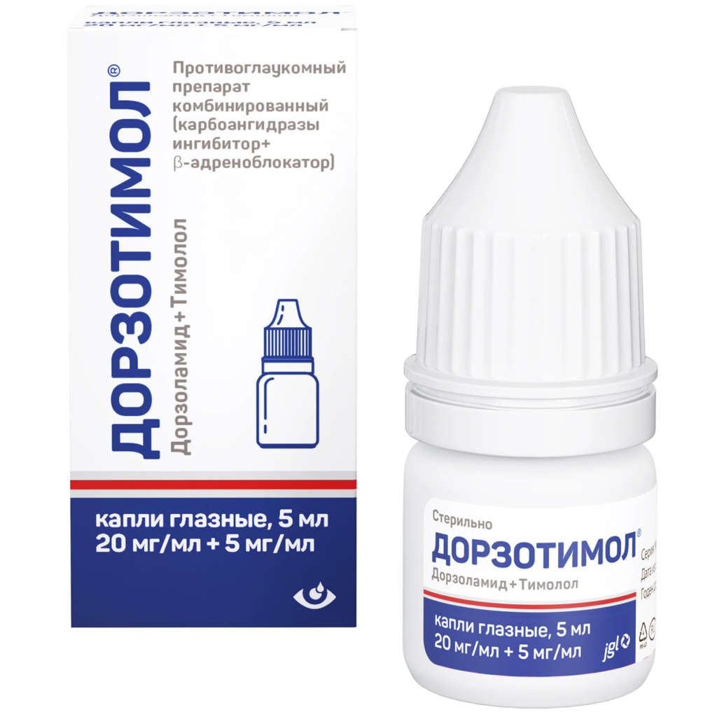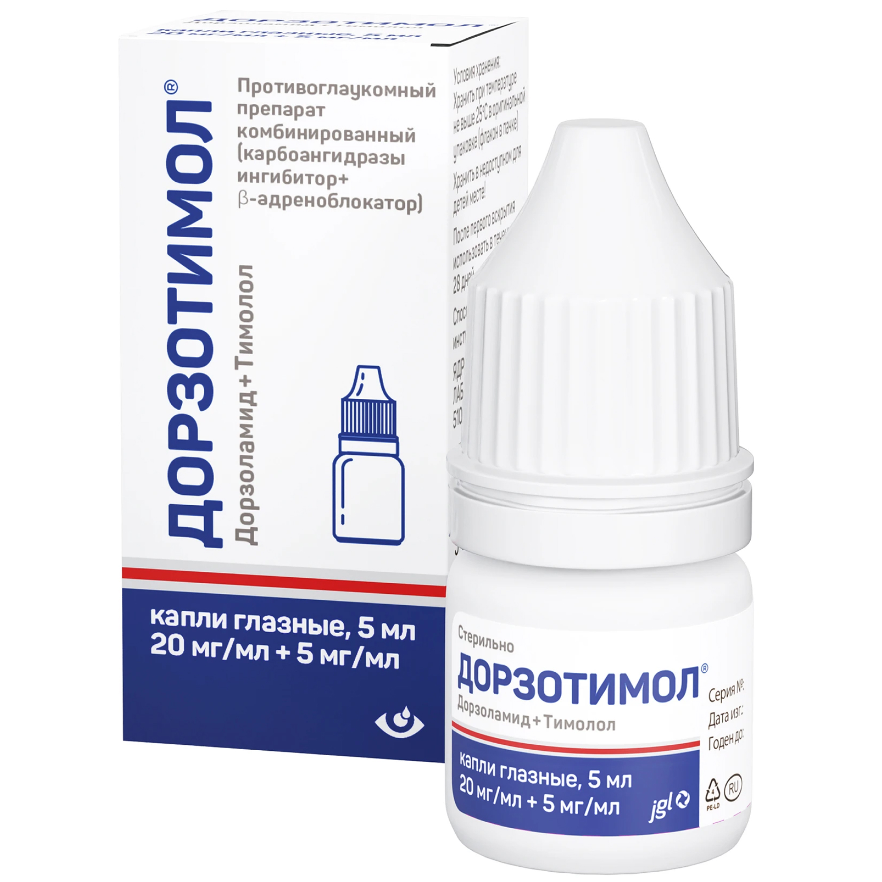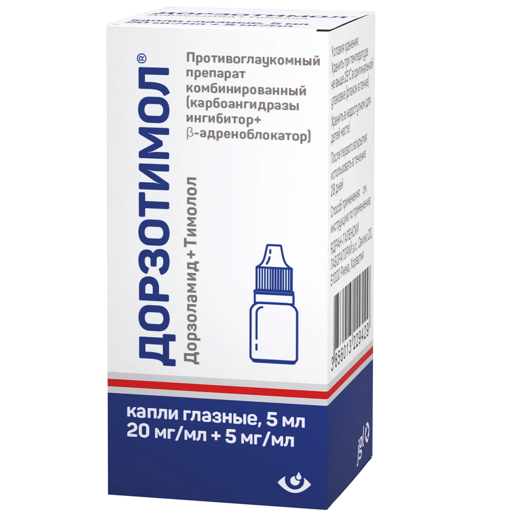 Препарат Дорзотимол® содержит два действующих вещества: дорзоламид и тимолол. Каждый из этих двух компонентов снижает повышенное ВГД за счет снижения секреции внутриглазной жидкости, но посредством различных механизмов действия.