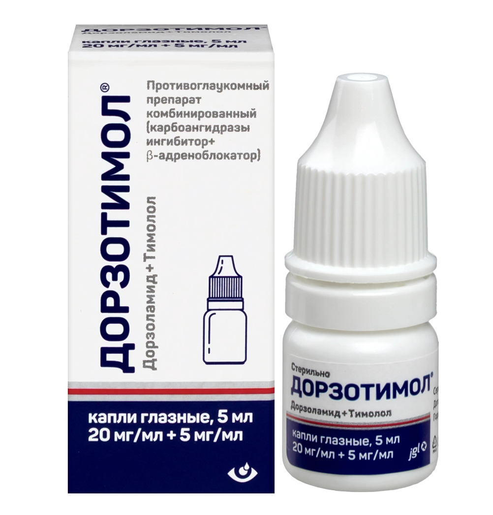 Препарат Дорзотимол® содержит два действующих вещества: дорзоламид и тимолол. Каждый из этих двух компонентов снижает повышенное ВГД за счет снижения секреции внутриглазной жидкости, но посредством различных механизмов действия.