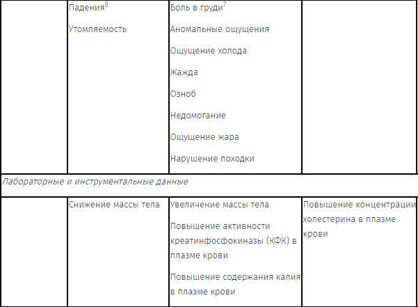 1 Случаи судорог и шума в ушах также отмечались и после отмены терапии.