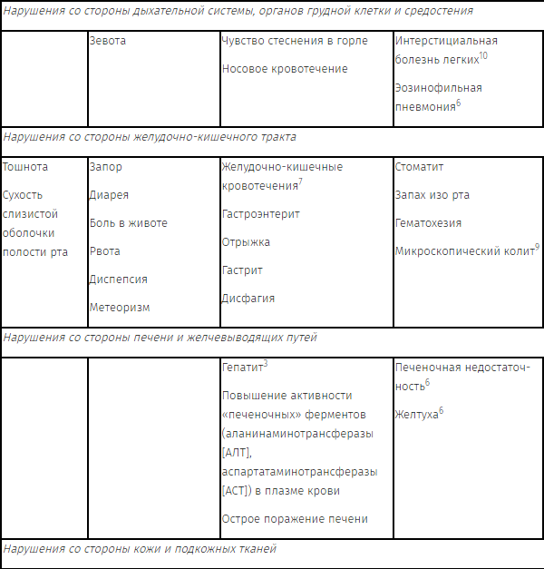 В таблице 1 представлены побочные действия и отклонения в лабораторных показателях, отмеченные в клинических исследованиях и/или в пострегистрационном периоде.