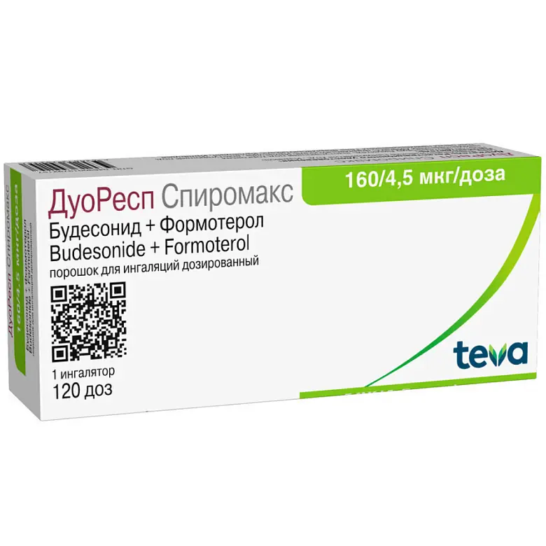 Препарат ДуоРесп Спиромакс 160/4.5 мкг/доза в качестве поддерживающей терапии и для купирования приступов