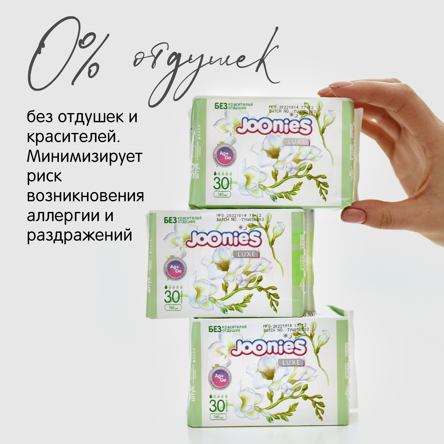 Благодаря специальному слою-полоске с наносеребром и германием прокладки Joonies: