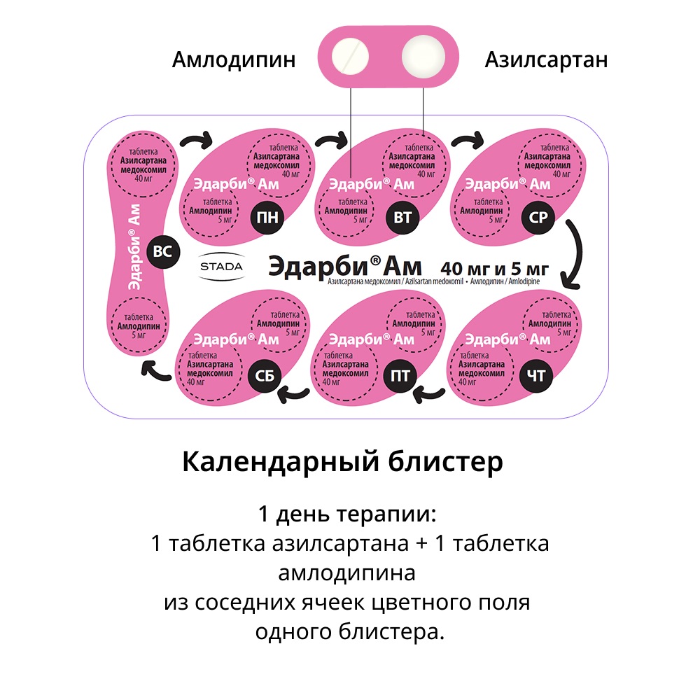 Препарат Эдарби® Ам следует принимать ежедневно, без перерыва.