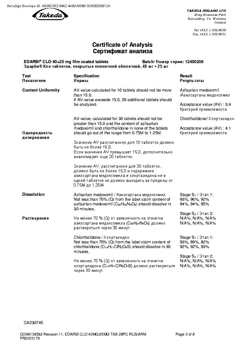 При необходимости дополнительного снижения АД дозу препарата Эдарби® Кло можно увеличить до максимальной 40 мг азилсартана медоксомила + 25 мг хлорталидона 1 раз/сут.