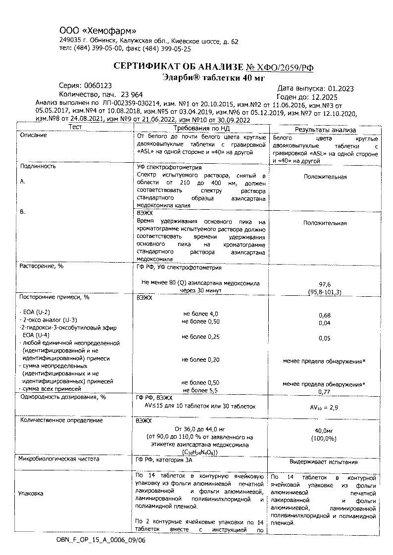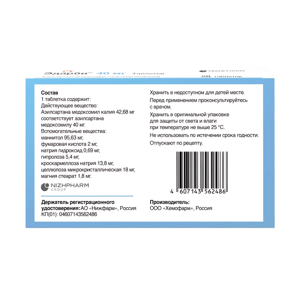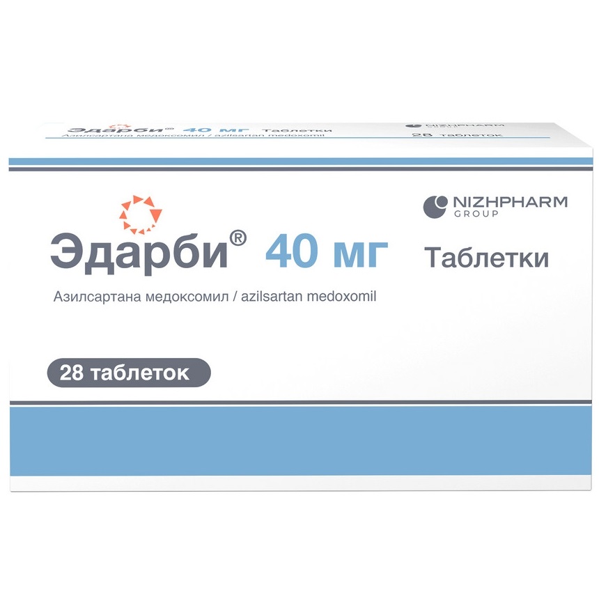 Безопасность и эффективность применения препарата не зависят от возраста пациентов, но большая чувствительность к снижению АД у некоторых пациентов пожилого возраста не может быть исключена. Как и при применении других антагонистов рецепторов ангиотензина II и ингибиторов АПФ, антигипертензивный эффект менее выражен у пациентов негроидной расы (обычно популяция с низкой активностью ренина в плазме крови). Одновременное применение Эдарби® 40 мг и 80 мг с дигидропиридиновыми блокаторами медленных кальциевых каналов (амлодипин) или тиазидными диуретиками (хлорталидон) приводит к дополнительному снижению АД по сравнению с терапией антигипертензивными средствами, применяемыми в монотерапии.