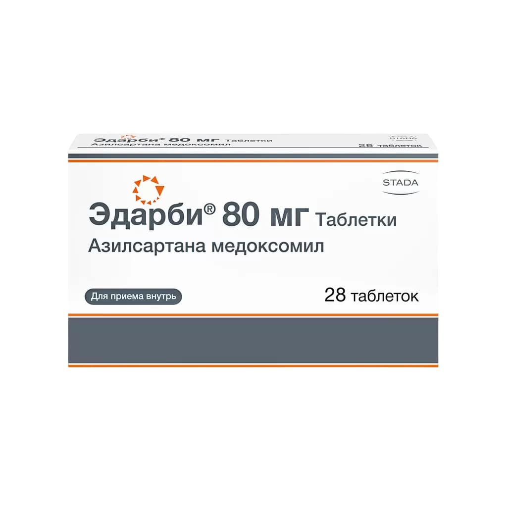 Безопасность и эффективность применения препарата не зависят от возраста пациентов, но большая чувствительность к снижению АД у некоторых пациентов пожилого возраста не может быть исключена. Как и при применении других антагонистов рецепторов ангиотензина II и ингибиторов АПФ, антигипертензивный эффект менее выражен у пациентов негроидной расы (обычно популяция с низкой активностью ренина в плазме крови). Одновременное применение Эдарби® 40 мг и 80 мг с дигидропиридиновыми блокаторами медленных кальциевых каналов (амлодипин) или тиазидными диуретиками (хлорталидон) приводит к дополнительному снижению АД по сравнению с терапией антигипертензивными средствами, применяемыми в монотерапии.
