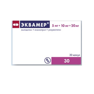 Эквамер® показан в качестве заместительной терапии у взрослых пациентов, состояние которых адекватно контролируется применением амлодипина, лизиноприла и розувастатина в тех же дозах, что и в препарате Эквамер®, при лечении артериальной гипертензии и сопутствующей дислипидемии: