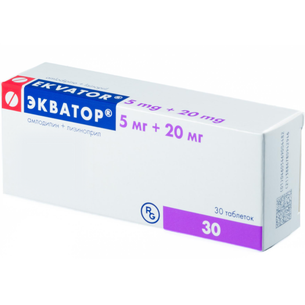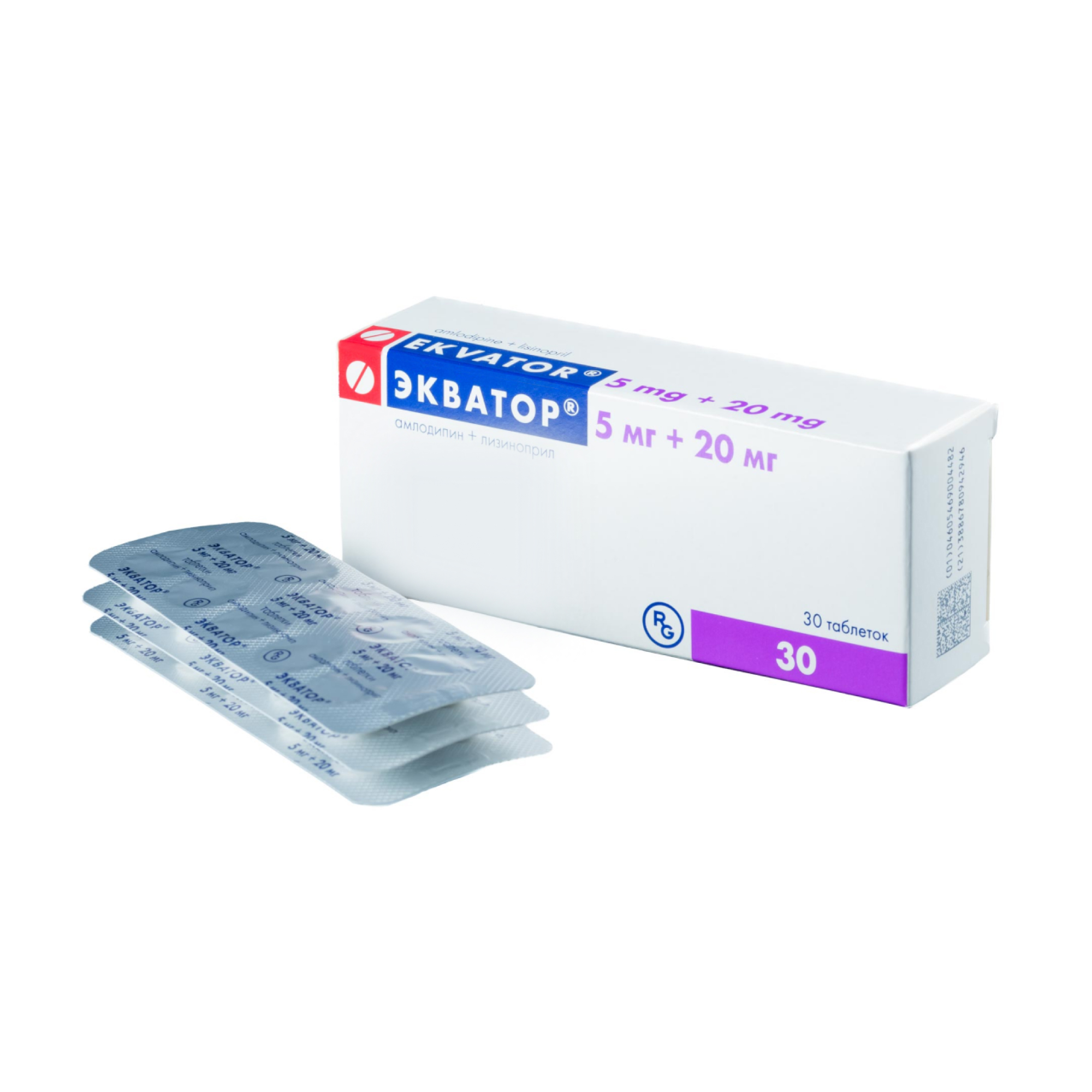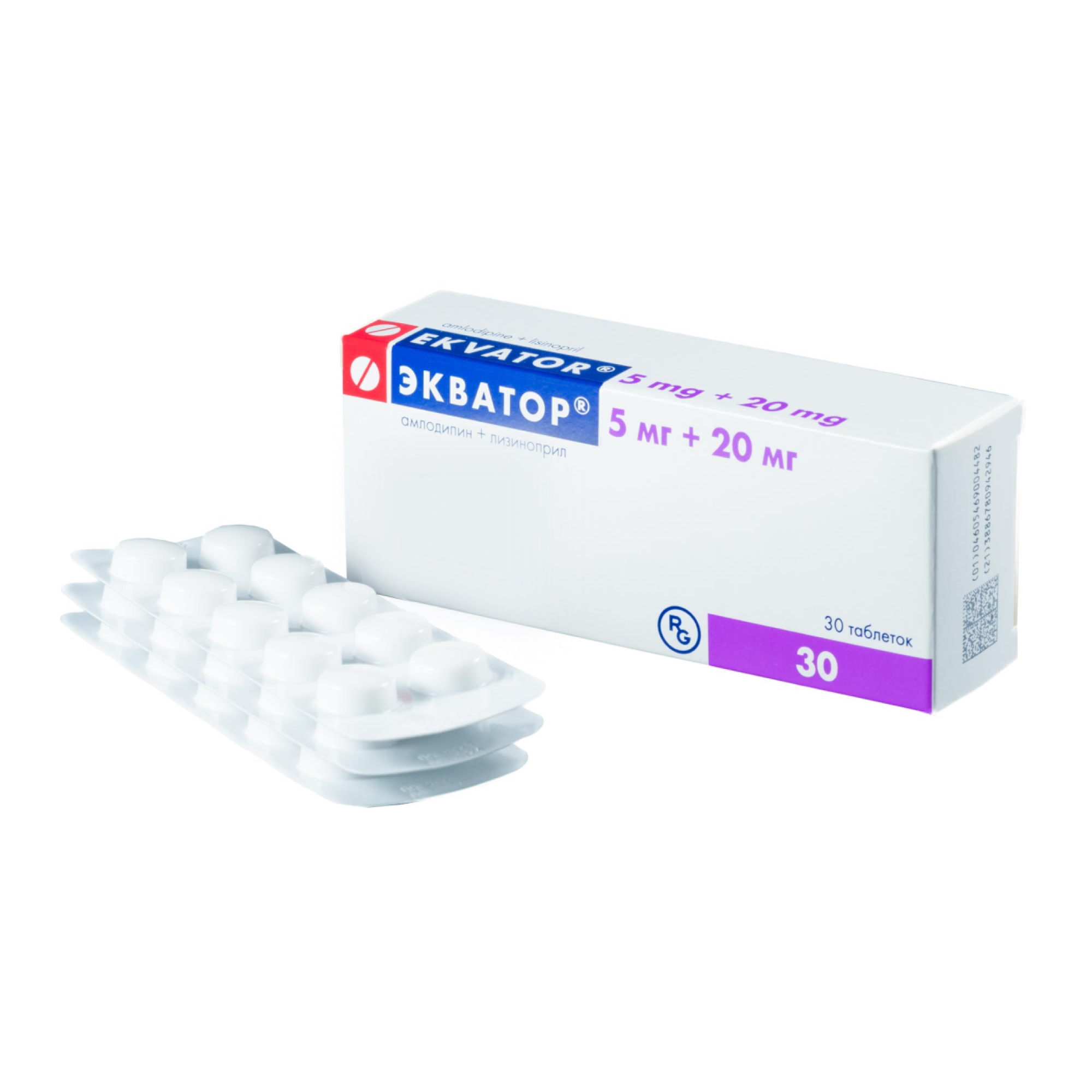 для препарата Экватор® таблетки 10 мг + 20 мг - 10 мг амлодипина и 20 мг лизиноприла.