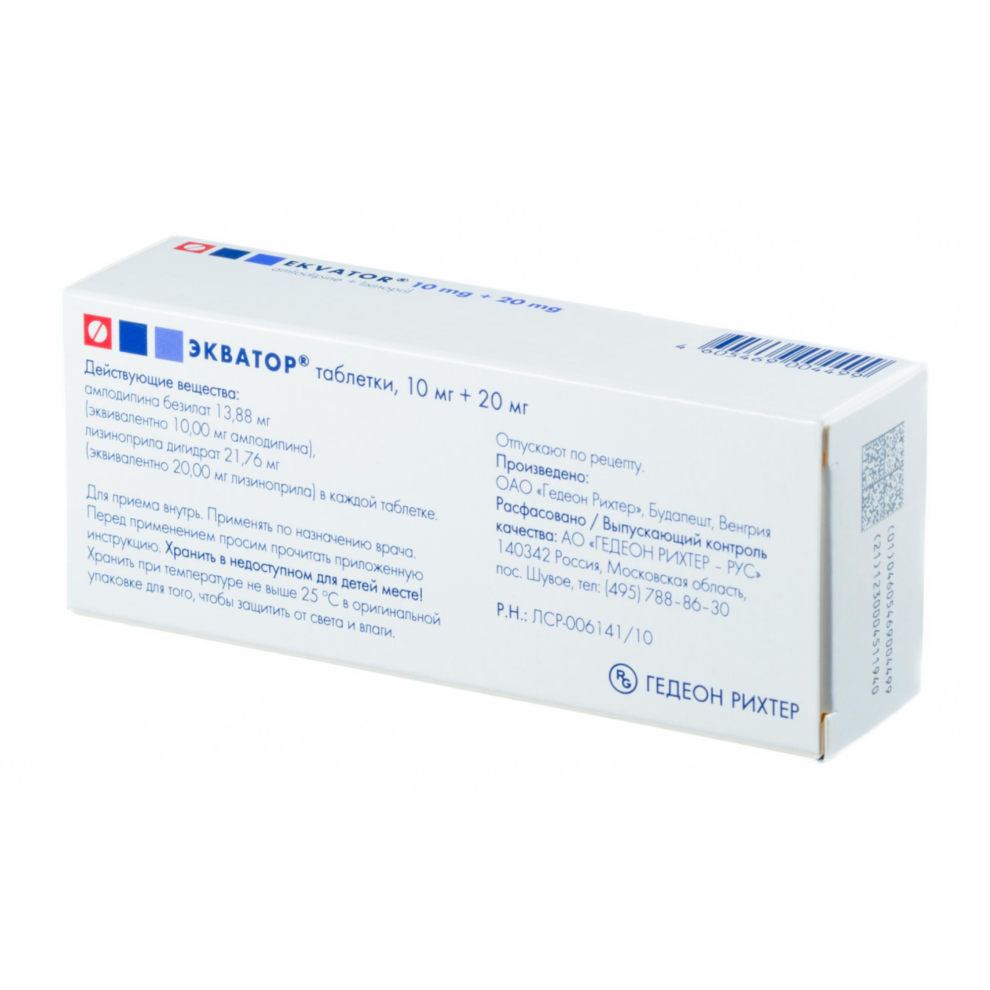 При развитии артериальной гипотензии в начале терапии препаратом Экватор®: при развитии артериальной гипотензии пациенту следует лечь на спину, приостановить прием препарата и обратиться к врачу. Транзиторная артериальная гипотензия обычно не требует отмены препарата, однако следует оценить необходимость снижения дозы. При необходимости подбора дозы следует применять лекарственные препараты амлодипин и лизиноприл раздельно.