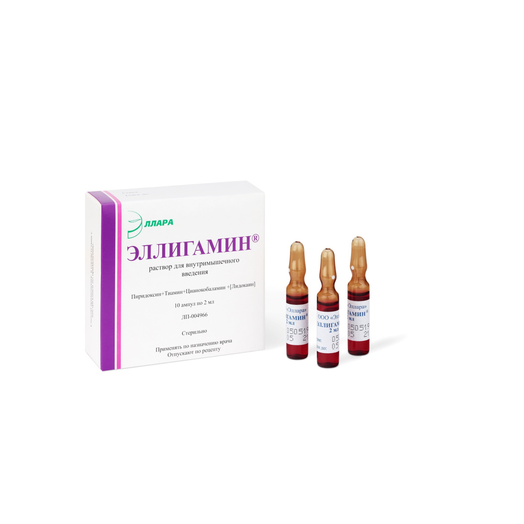 Препарат ЭЛЛИГАМИН® содержит 40 мг бензилового спирта в 2 мл раствора для инъекций (1 ампула). Бензиловый спирт может вызвать аллергическую реакцию. Бензиловый спирт связан с риском развития тяжелых нежелательных реакций, включая проблемы с дыханием (так называемый «синдром удушья») у маленьких детей. Минимальное количество бензилового спирта, при котором может возникнуть токсичность, неизвестно. Большие объемы следует использовать с осторожностью и только при необходимости, особенно у людей с нарушением функции печени или почек, а также во время беременности и кормления грудью из-за риска накопления и токсичности (метаболический ацидоз).