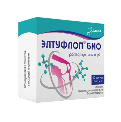 ЭЛТУФЛОП® БИО предотвращает разрушение макромолекулярных структур нормальных тканей, стимулирует процессы восстановления в интерстициальной ткани и в ткани суставного хряща, что объясняет его обезболивающее действие.