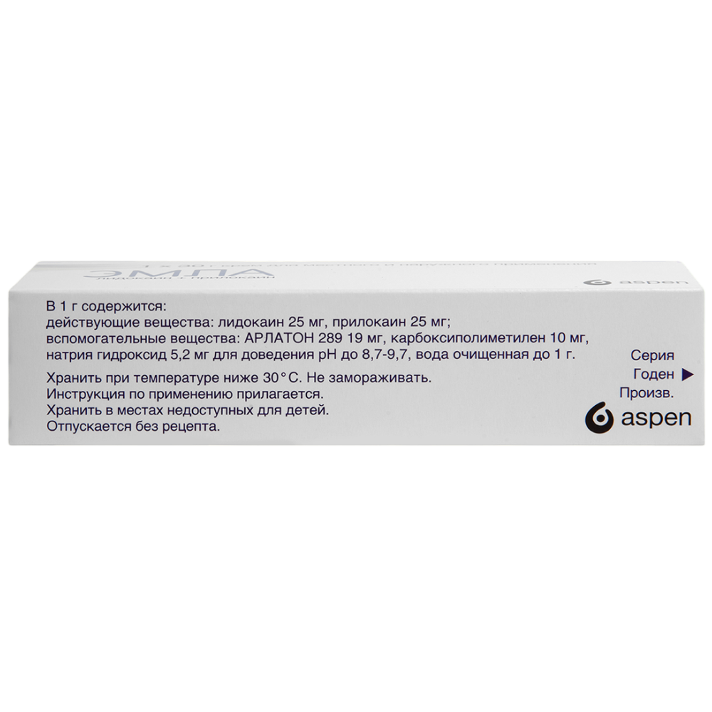 Активные вещества: лидокаин 25 мг, прилокаин 25 мг.