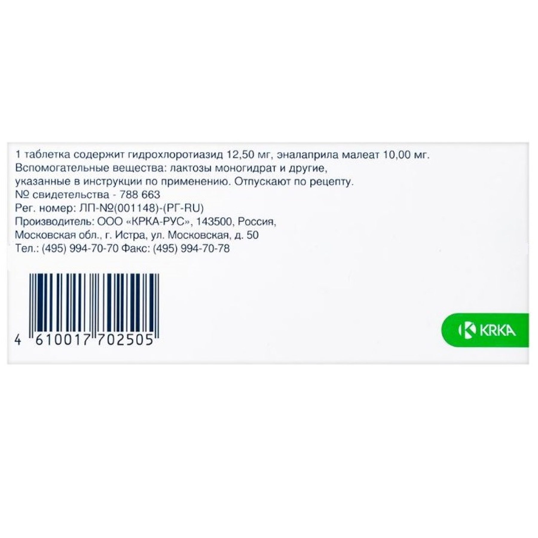 После приема внутрь абсорбция - 60%. Прием пищи не влияет на всасывание. В печени подвергается метаболизму с образованием активного метаболита эналаприлата, который является более эффективным ингибитором АПФ, чем эналаприл. Время достижения Cmax эналаприла - 1 ч, эналаприлата - 3-4 ч. Эналаприлат легко проникает через гистогематические барьеры, исключая ГЭБ, небольшое количество проникает через плацентарный барьер, выделяется с грудным молоком. Связывание с белками плазмы крови эналаприлата - 50-60%.