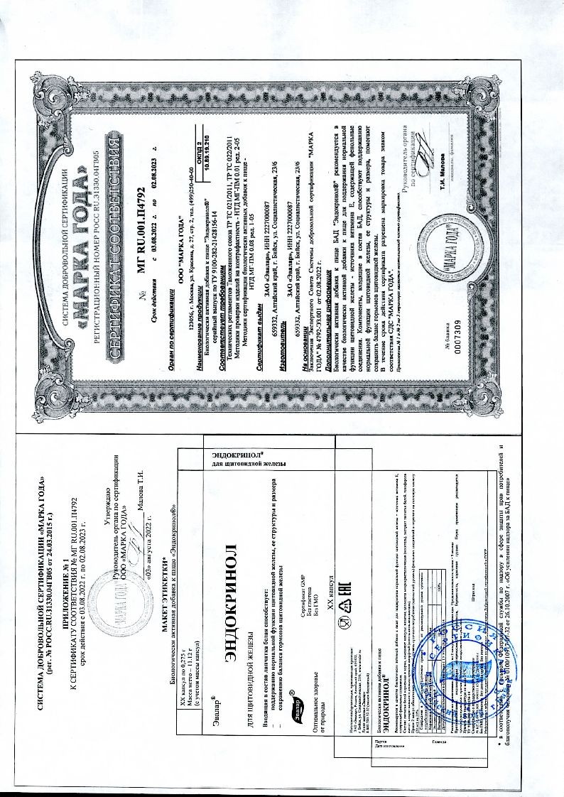 «Эндокринол» от компании «Эвалар» – самый популярный в России негормональный растительный комплекс на основе именно корней лапчатки белой. Он способствует поддержанию нормальной функции щитовидной железы, ее структуры, размера и баланса гормонов. Специально разработанная формула из экстракта и порошка корней лапчатки белой в составе «Эндокринола» обеспечивает их синергичное действие, а выверенная специалистами дозировка позволяет добиться максимального эффекта. Кроме того, «Эндокринол» – это единственный комплекс для здоровья щитовидной железы, действующий изнутри (капсулы) и снаружи (крем-гель) – для оптимальной концентрации биологически активных веществ.