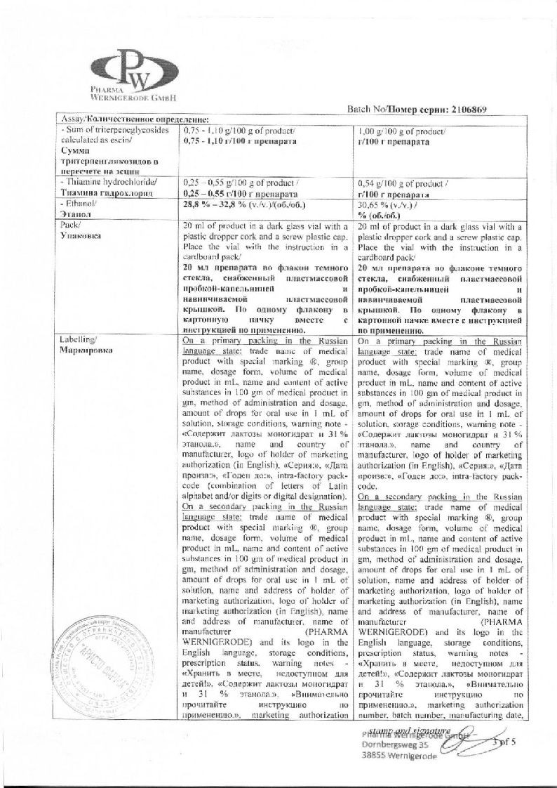 После приема внутрь 50 мг экстракта плодов конского каштана Cmax в плазме крови достигается через 2.35 ч и составляет 25.31 нг/мл.
