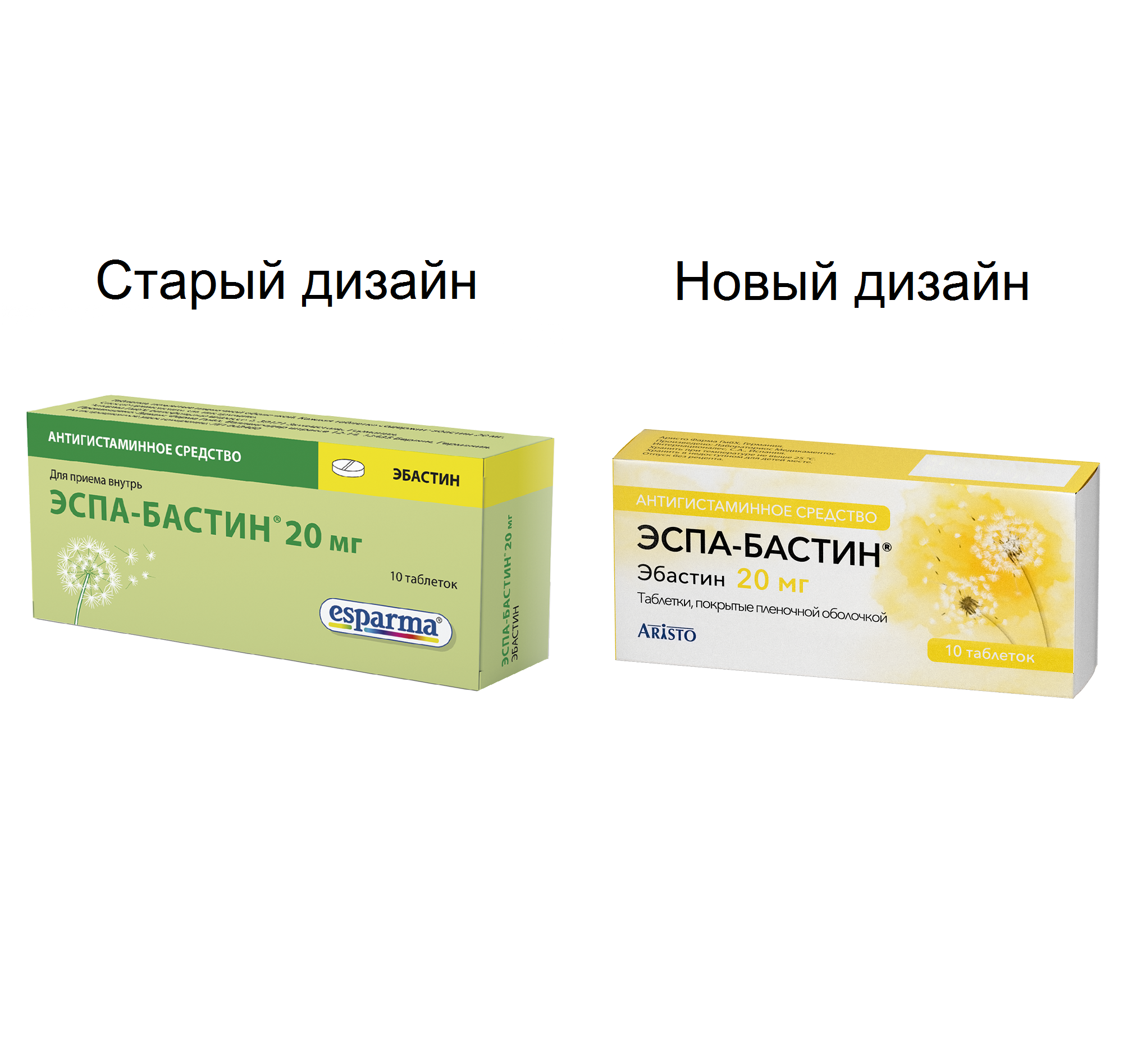Действующее вещество: эбастин - 10,00 мг/20,00 мг;