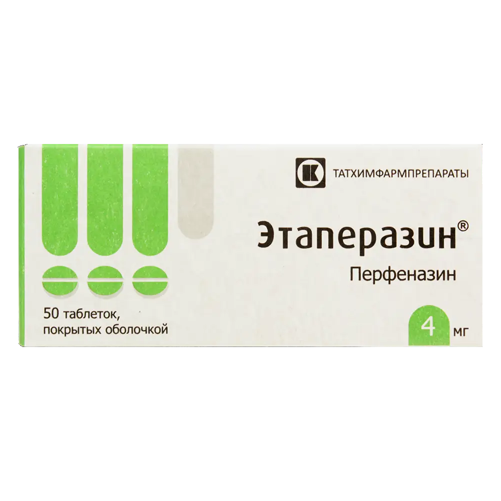 Активное вещество: перфеназина дигидрохлорид (этаперазин) 4 мг.