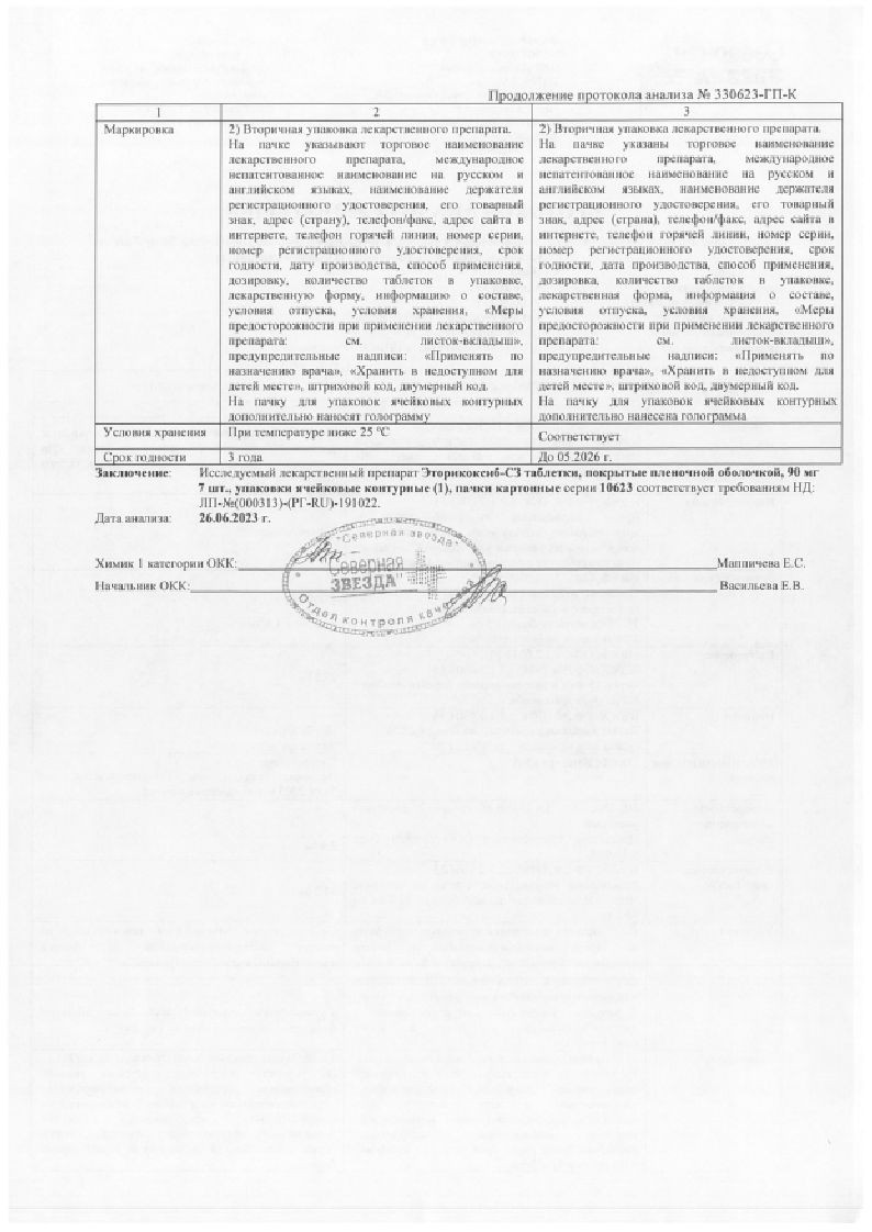 Заместительная гормональная терапия (ЗГТ). Назначение эторикоксиба в дозе 120 мг одновременно с препаратами для заместительной гормональной терапии, содержащими конъюгированные эстрогены в дозе 0.625 мг, в течение 28 дней увеличивает среднее значение равновесной AUC0-24ч неконъюгированного эстрона (41%), эквилина (76%) и 17-β-эстрадиола (22%). Влияние доз эторикоксиба, рекомендованных для длительного применения (30, 60 и 90 мг), не изучалось. Эторикоксиб в дозе 120 мг изменял экспозицию (AUC0-24ч) данных эстрогенных компонентов менее чем вдвое по сравнению с монотерапией препаратом, содержащим конъюгированные эстрогены, при увеличении дозы последнего с 0.625 до 1.25 мг. Клиническое значение таких повышений неизвестно. Применение комбинации эторикоксиба и препарата, содержащего более высокие дозы конъюгированных эстрогенов, не изучалось. Повышение концентрации эстрогенов следует принимать во внимание при выборе гормонального препарата для применения в период постменопаузы при одновременном назначении с эторикоксибом, поскольку увеличение экспозиции эстрогенов может повышать риск развития нежелательных явлений, связанных с ЗГТ.