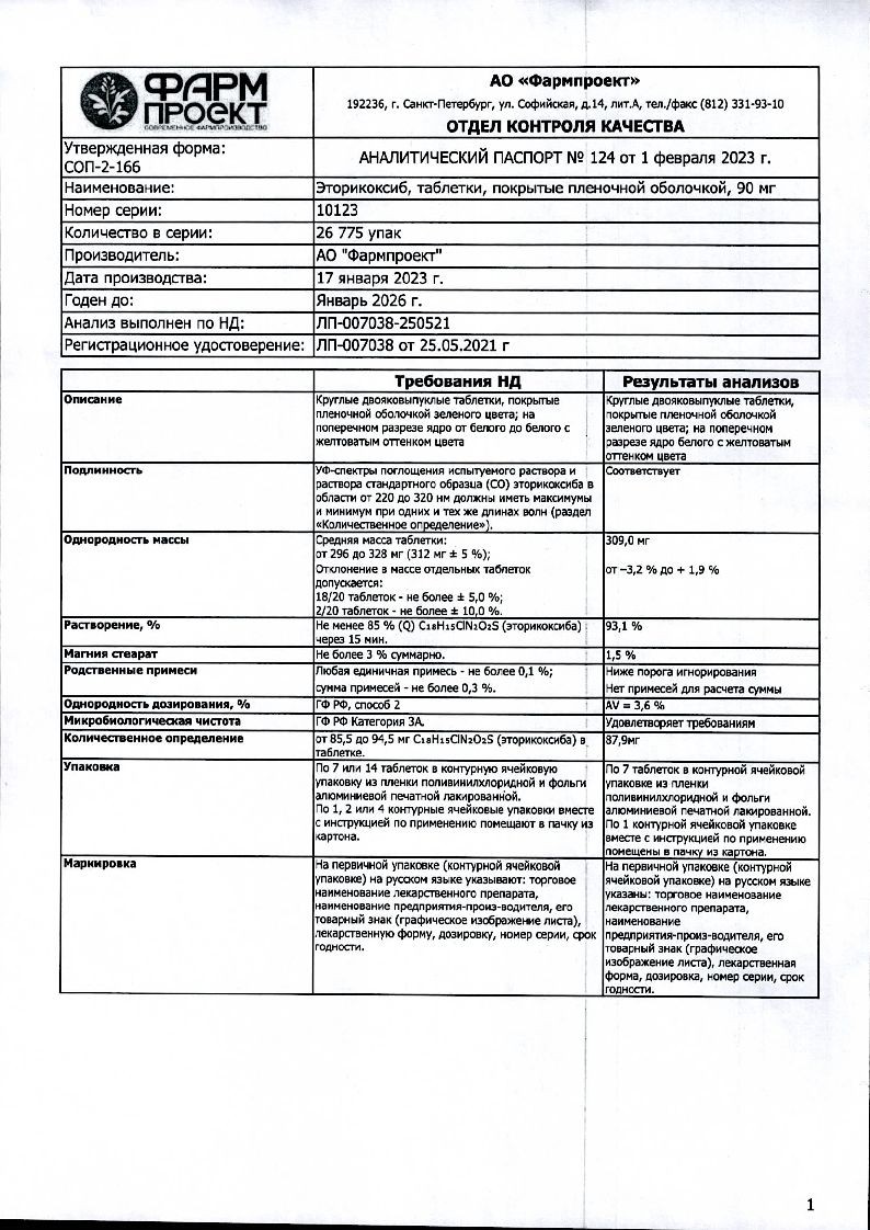 В клинических фармакологических исследованиях эторикоксиб дозозависимо ингибировал ЦОГ-2, не оказывая влияния на ЦОГ-1 при применении суточной дозы до 150 мг. Эторикоксиб не ингибирует синтез простагландинов в слизистой оболочке желудка и не влияет на функцию тромбоцитов.