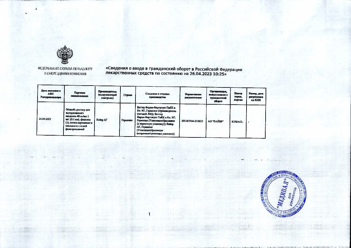 Препарат Эйлеа® предназначен только для введения в стекловидное тело.