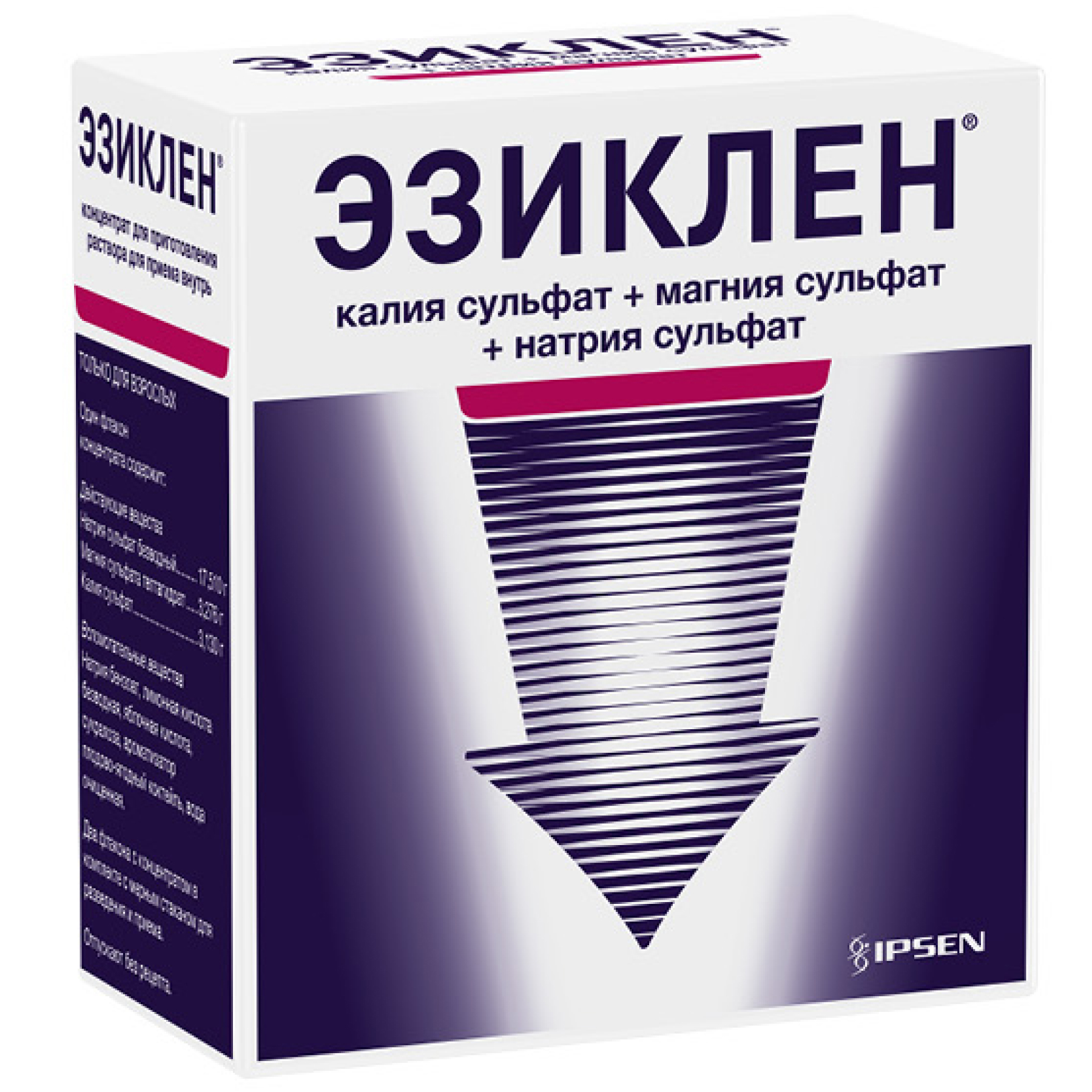 Препарат Эзиклен® предназначен для очищения толстой кишки у взрослых пациентов (в возрасте от 18 лет) при подготовке к эндоскопическому и радиологическому исследованию толстой кишки или к хирургическим вмешательствам, требующим отсутствия содержимого в толстой кишке.