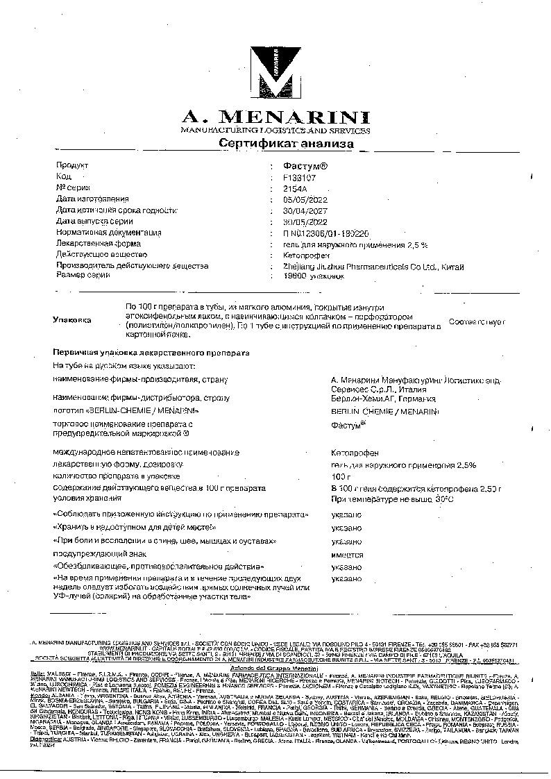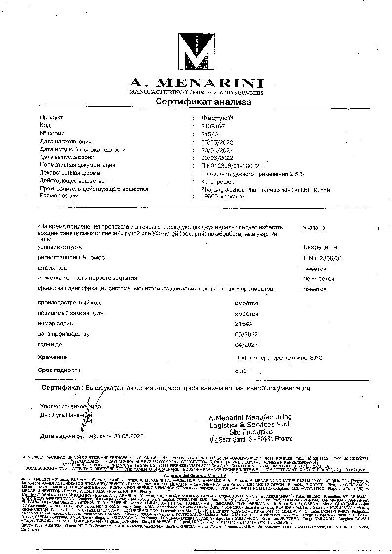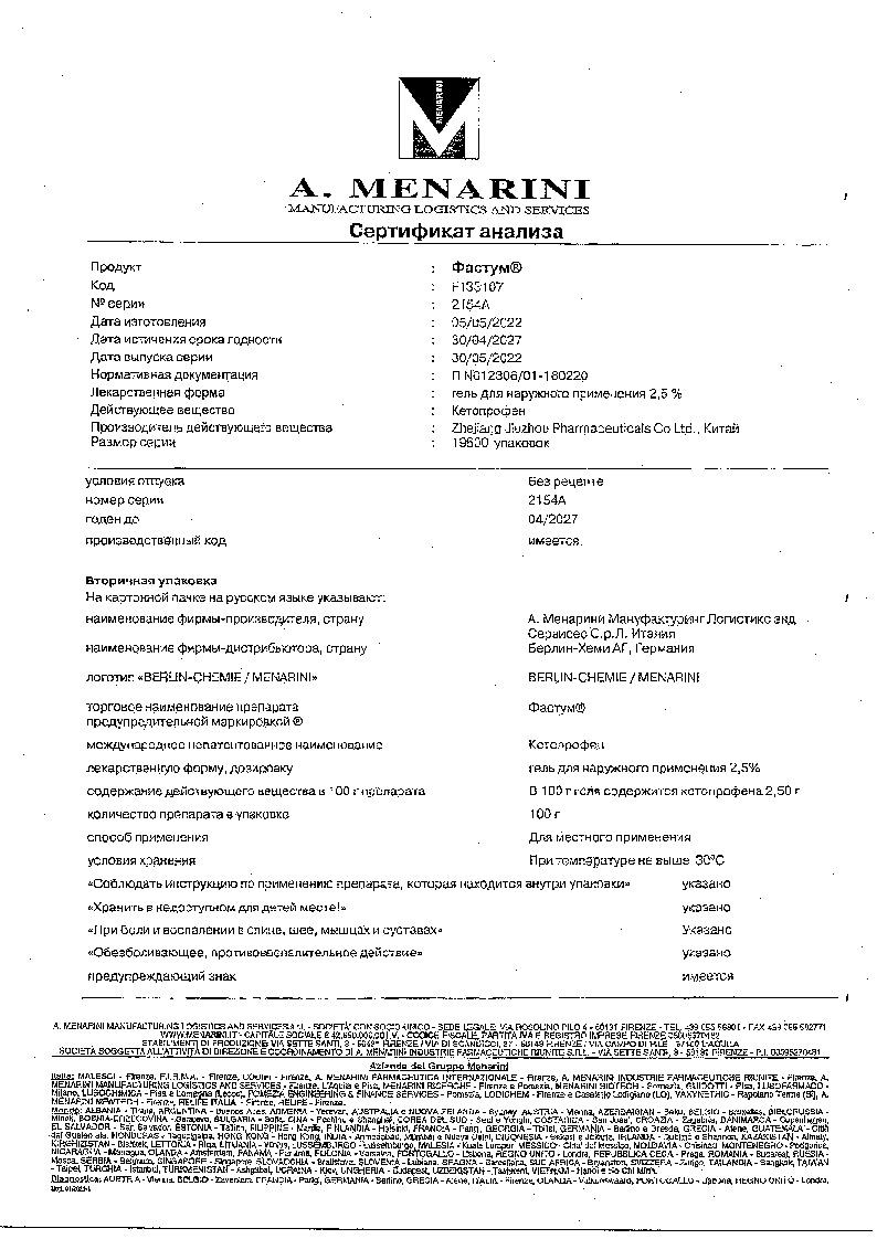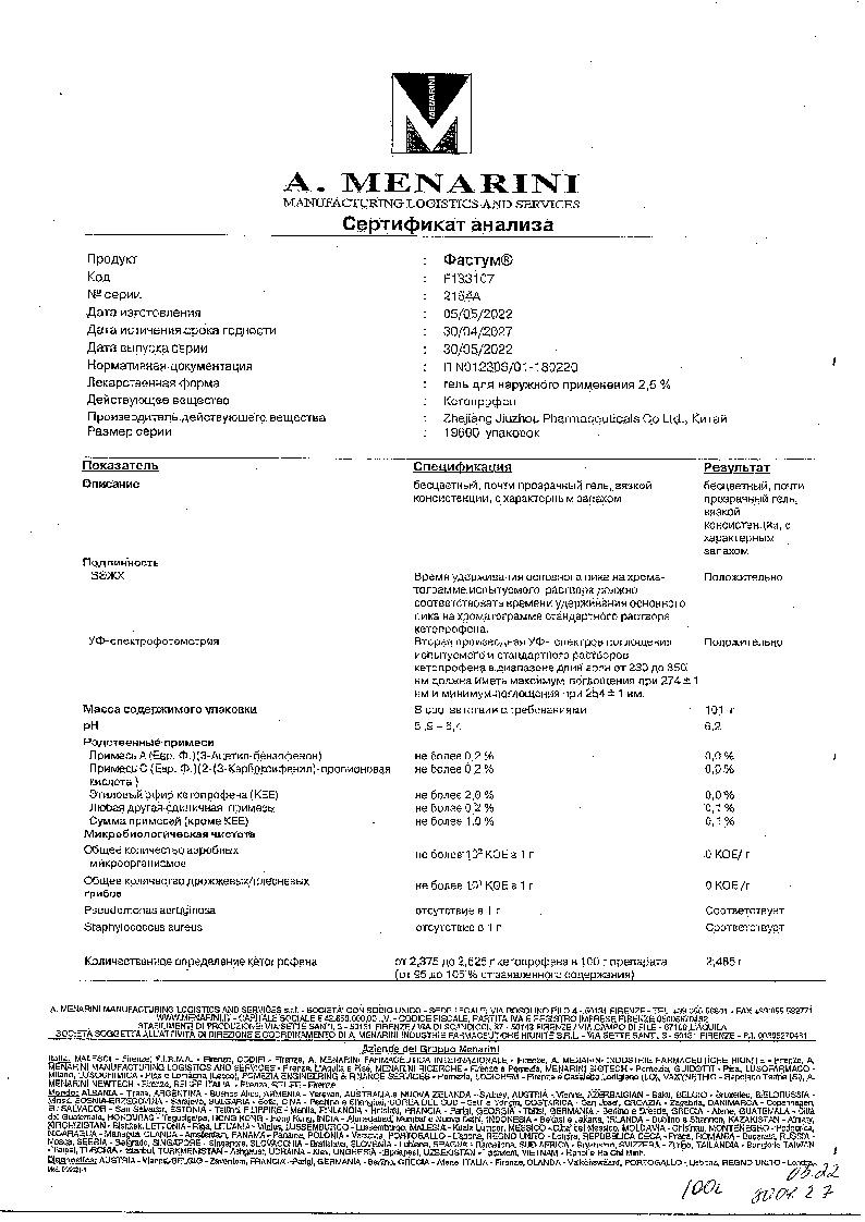 Препарат Фастум® не влияет на способность к вождению транспортных средств и работу требующую повышенной концентрации внимания.