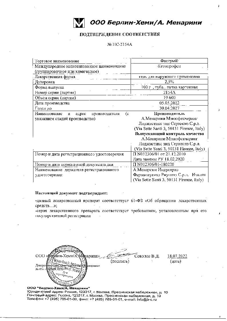 При использовании контейнера с дозатором (диспенсер): дважды надавить на купол дозатора или на основание до появления геля. Рекомендуется держать диспенсер в горизонтальном положении. Наносят гель тонким слоем на пораженный участок или кожные покровы над очагом воспаления 1-2 раза в сутки и слегка втирают. Количество наносимого геля зависит от величины обрабатываемого участка. Возможно использование препарата Фастум® в сочетании с физиотерапией (фонофорез и ионофорез). Курс лечения 10 дней.